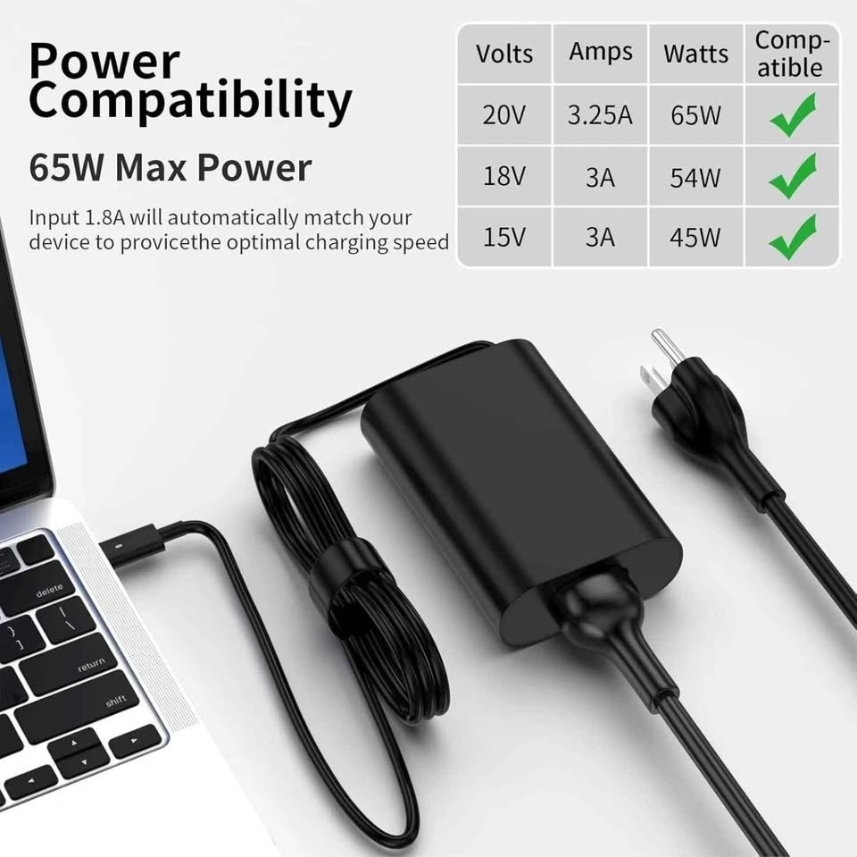 This is a 65W USB C fast charging power supply cord for Dell Latitude and XPS laptops, as well as Chromebooks. Compatible models include Dell Latitude 5520, 5420, 5320, 5430, 7420, 7390, 7320, 7400, and XPS 13/15. Also works with Chromebook 3100.