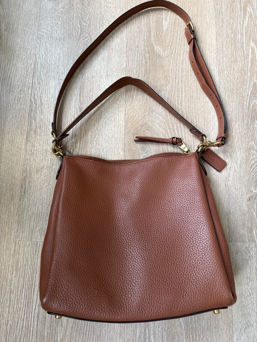 60Selling a lovely Coach hobo bag in brown leather! It's in great condition and ready for a new home. The bag features a convenient zip pocket on the back and stylish gold-tone hardware. 2 traps for over the shoulder and crossbody versatile and adjustable.