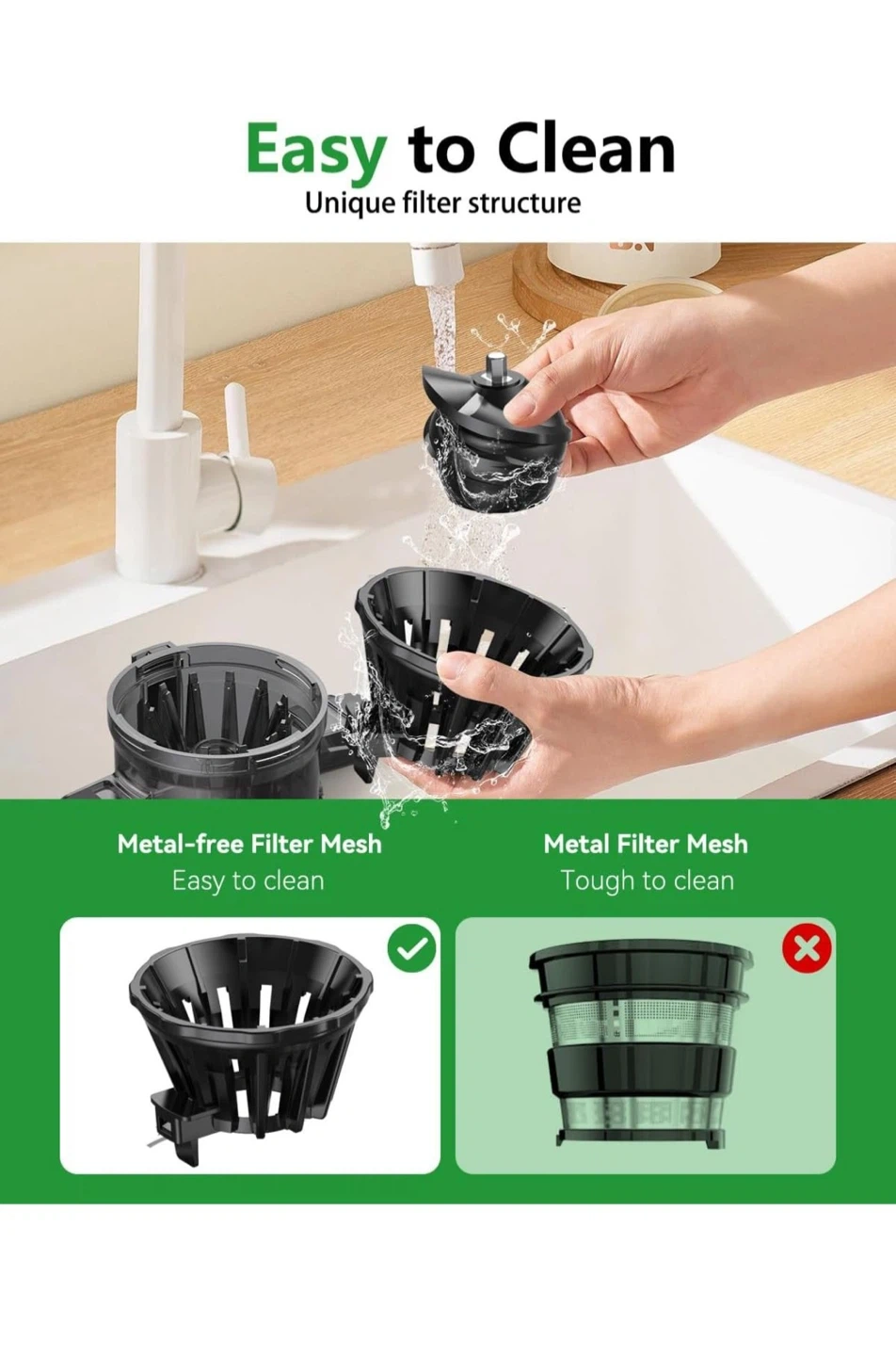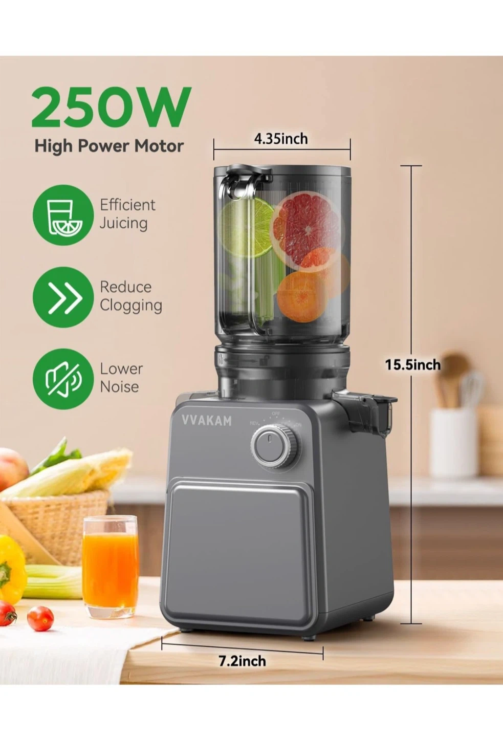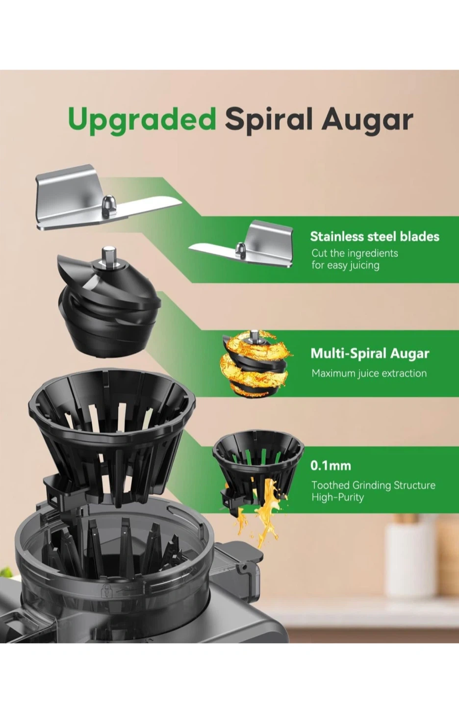 87Cold Press Juicer, Masticating Juicer Machines Fit Whole Vegetables & Fruits, Slow Masticating Juicers with 4.4'' Large Feed Chute, Easy to Clean, High Juice Yield - 250W
