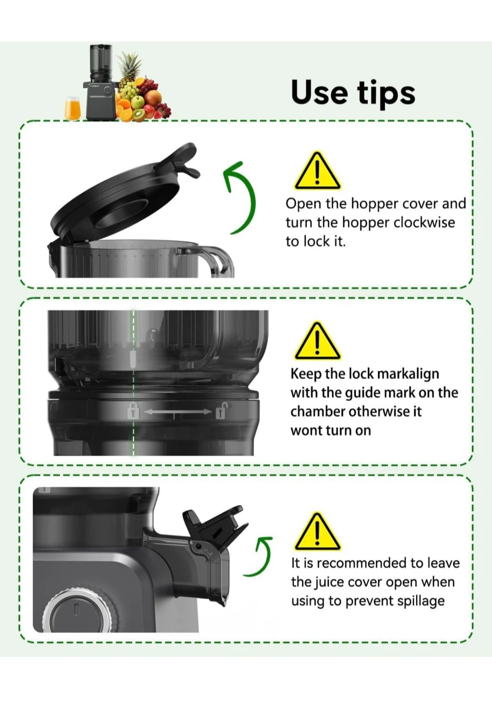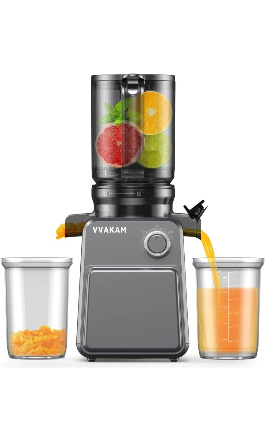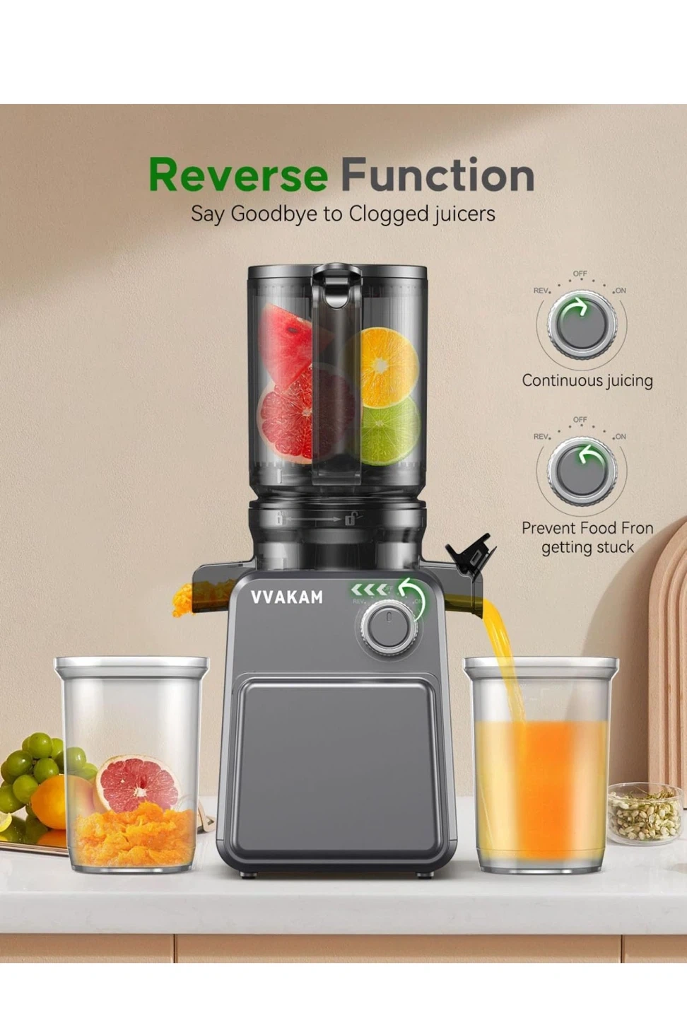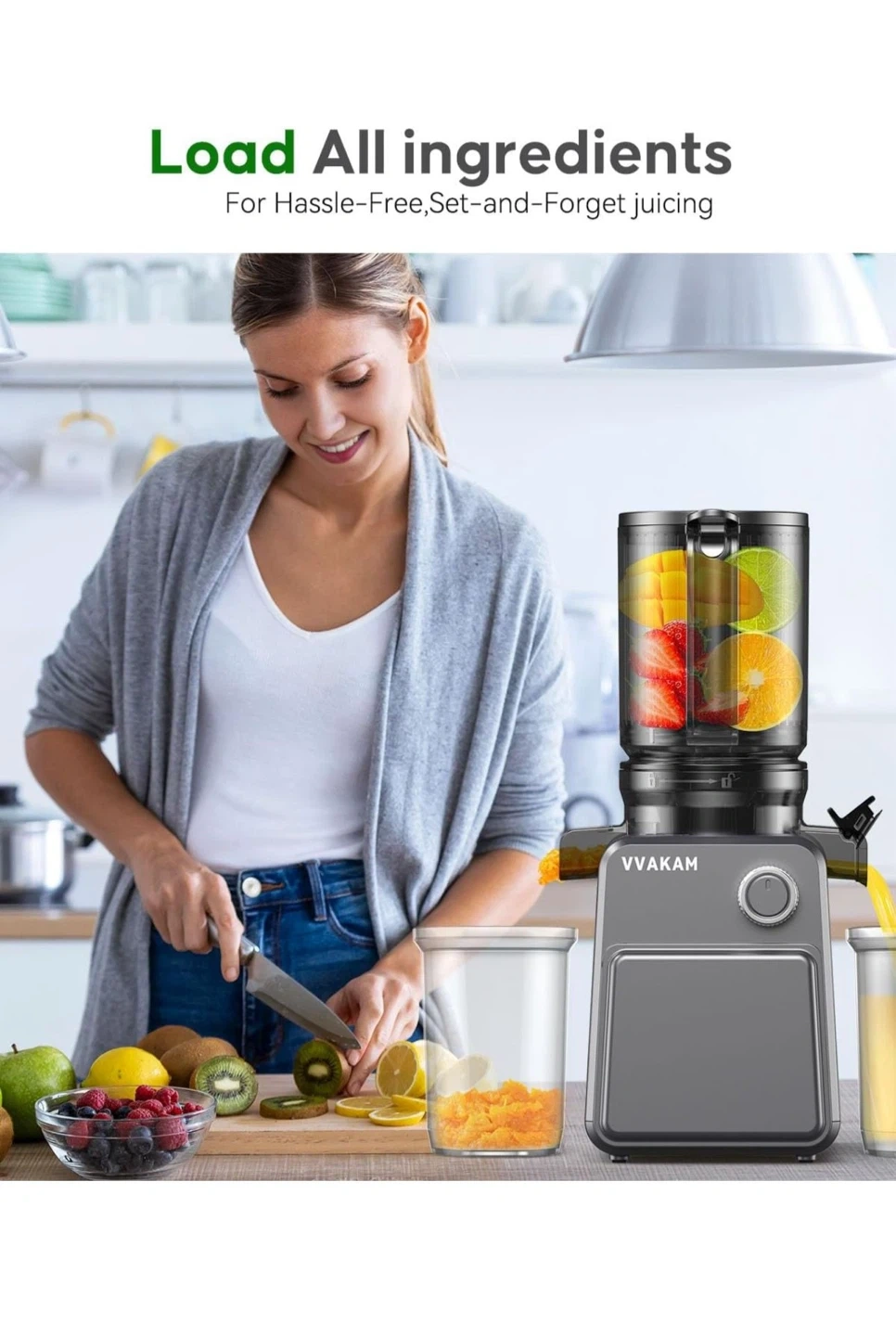 87Cold Press Juicer, Masticating Juicer Machines Fit Whole Vegetables & Fruits, Slow Masticating Juicers with 4.4'' Large Feed Chute, Easy to Clean, High Juice Yield - 250W