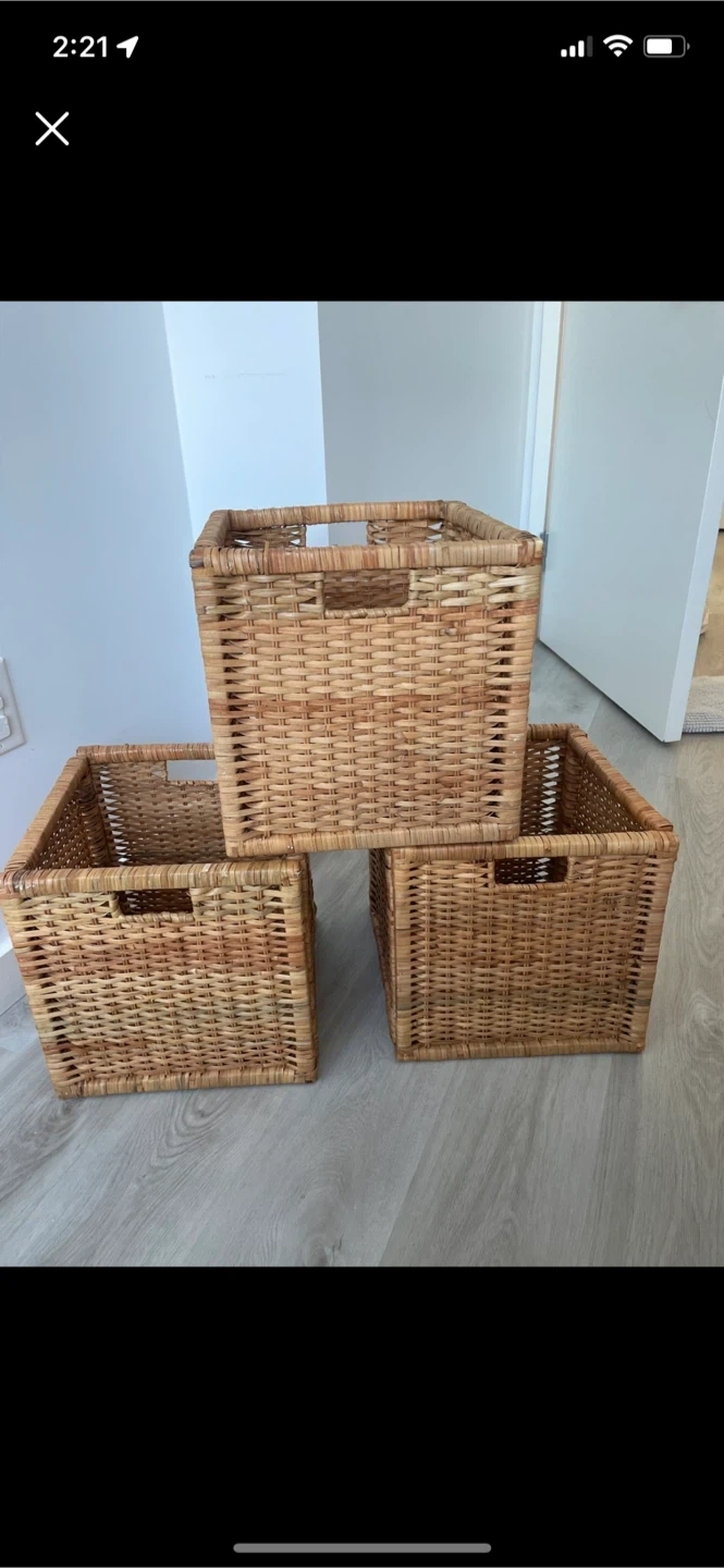 Selling a set of three wicker storage baskets! They're in great condition and perfect for organizing your home. These baskets add a touch of natural style to any room