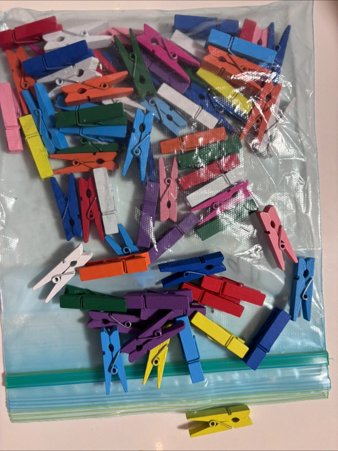 Selling a collection of colorful wooden clothespins! They are in great condition and ready to help you with all your hanging needs. Add a pop of color to your laundry routine or use them for crafts and decorations. About 1 inch in size Pack of 50