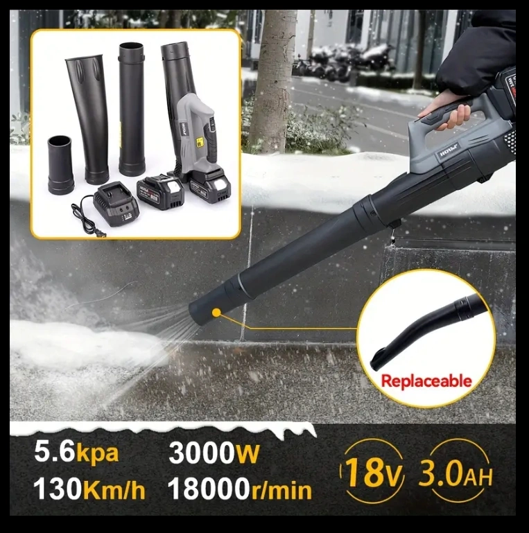 10Selling a cordless leaf blower that's compatible with Makita 18V batteries! It features a copper core motor and has a rated power of 3000W. The wind speed goes up to 130km/h, and it's great for clearing standing water, fallen leaves, snow, dust, wood chips, and soil