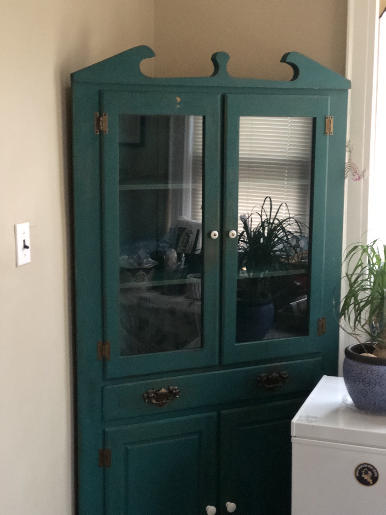 Corner Curio Display Cabinet - Brown Wood