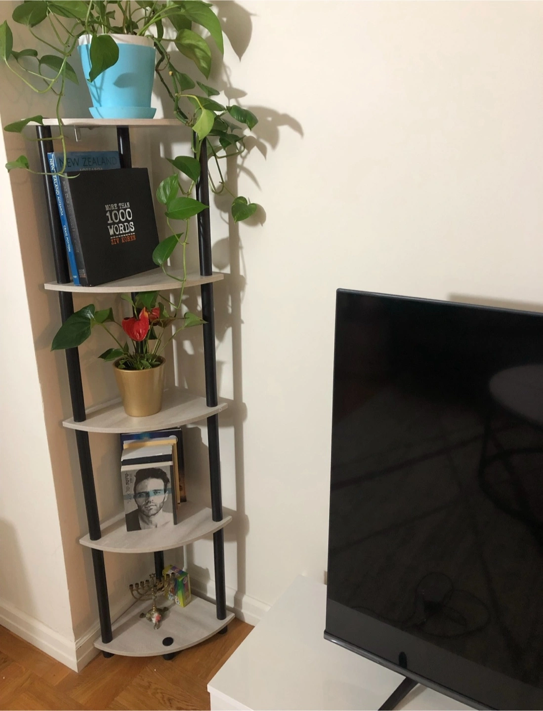 White TV Stand with Shelves and Doors