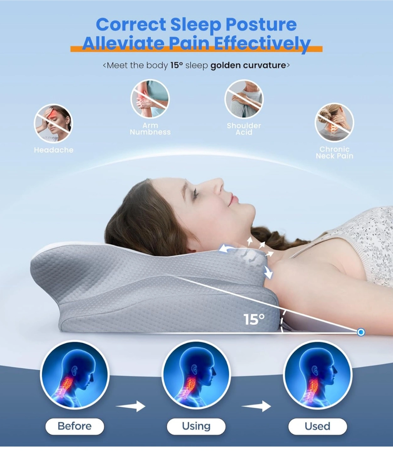 I'm selling a Cozyplayer cervical memory foam pillow! It's designed to provide correct sleep posture and alleviate pain effectively. The pillow meets the body's 15° sleep golden curvature. It comes in its original box