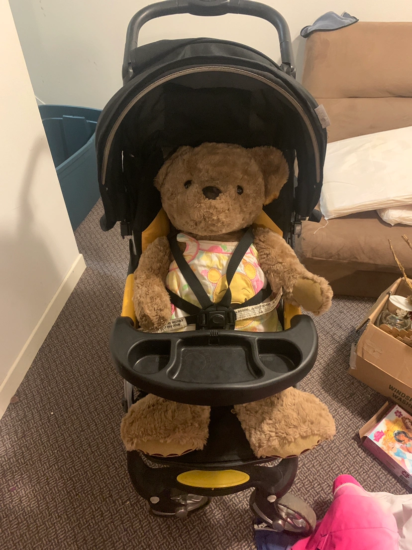 (TEDDY NOT INCLUDED) This stroller is perfect if you are a parent looking for a stroller at a good price. This is also up for $100-$80 (will be cleaned before given)