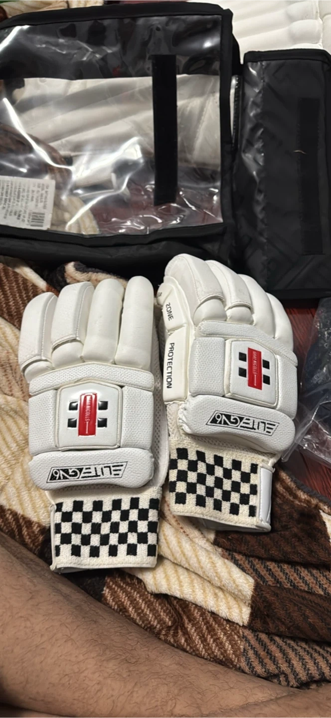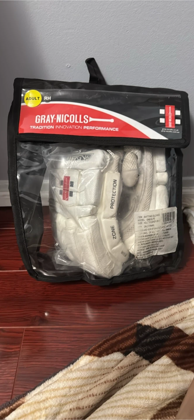 Adult Right Hand batting gloves from Gray-Nicolls. Model GN6. These Elite 6 gloves offer protection and comfort for cricket. Comes in a carry bag.
