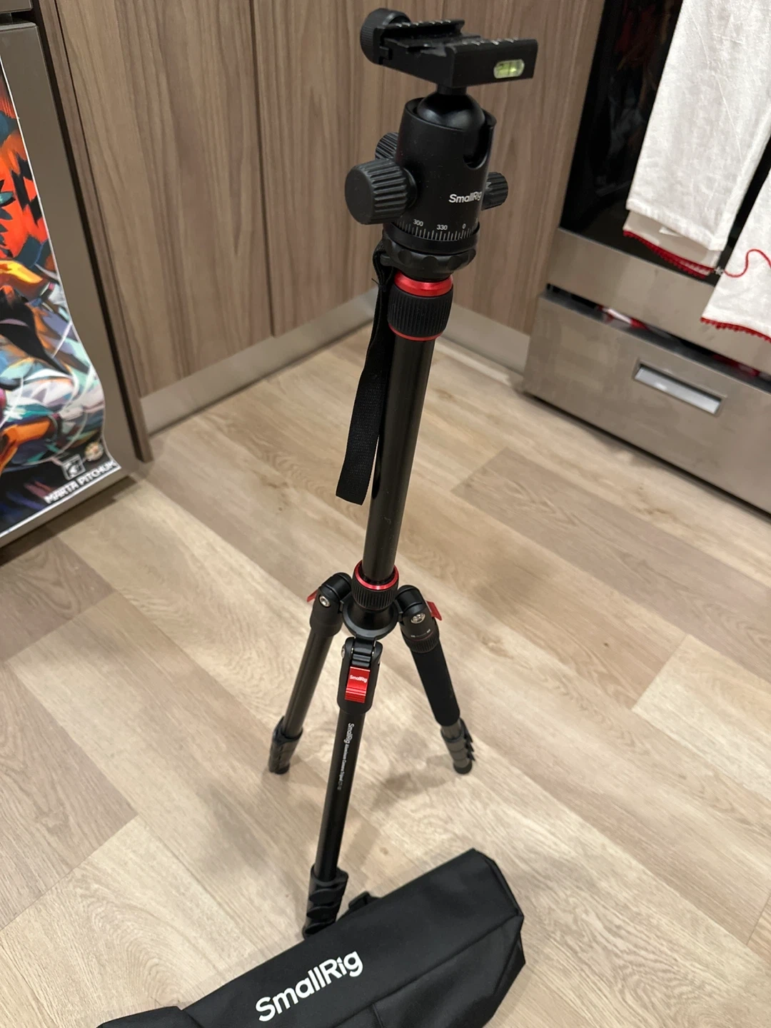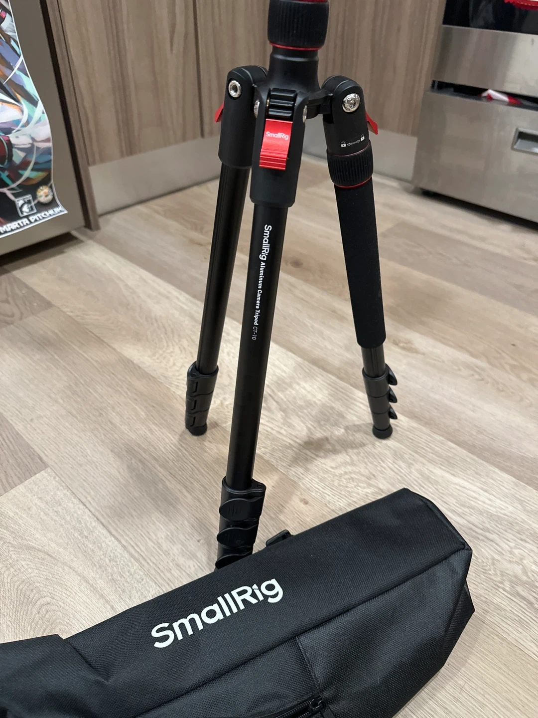This is a SmallRig Aluminum Camera Tripod CT-10. It's lightweight and portable for on-the-go shooting. Includes the carrying bag for easy transport.