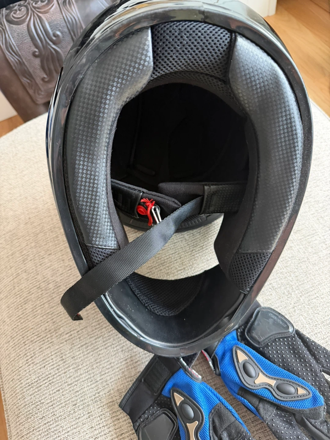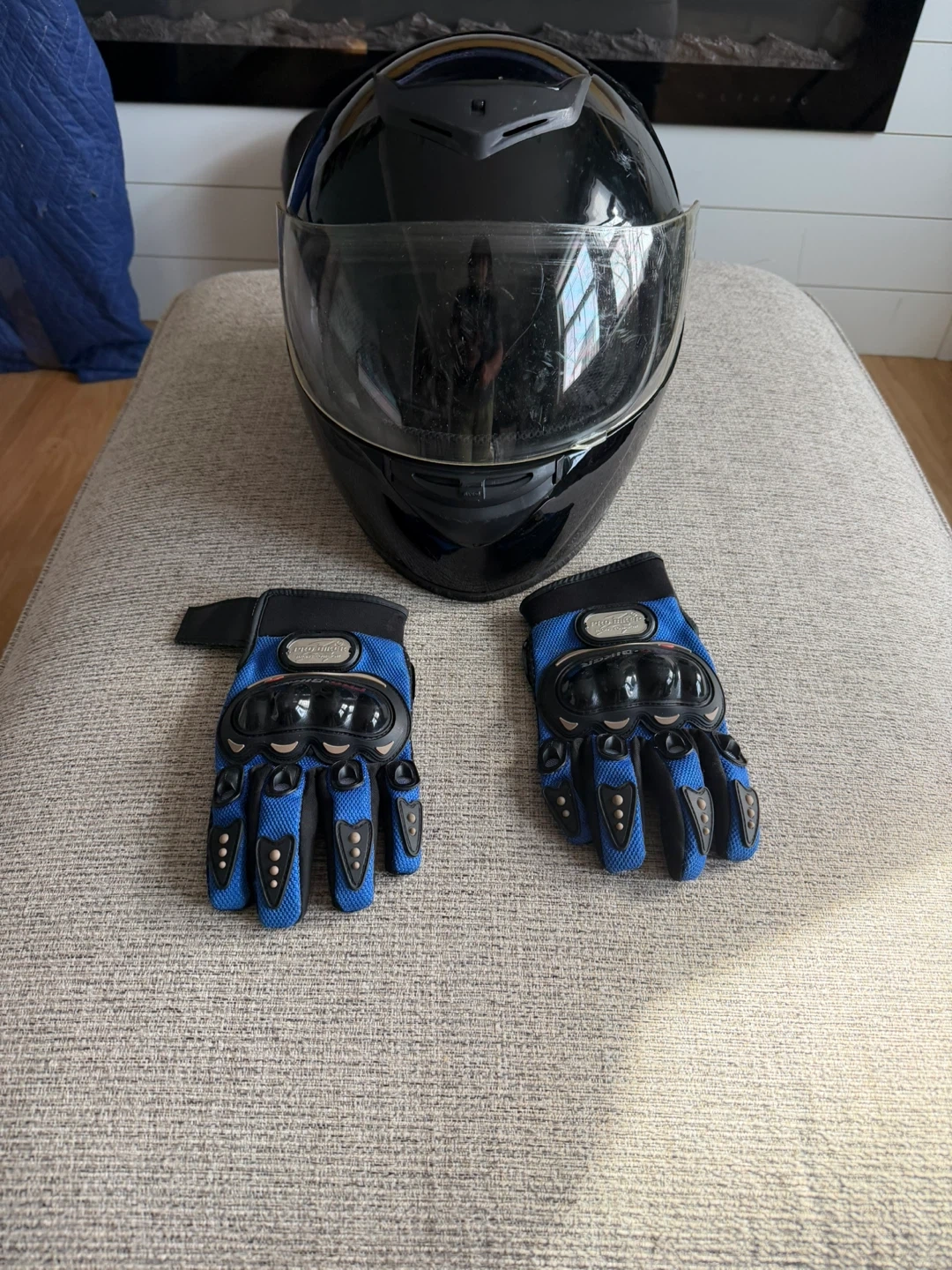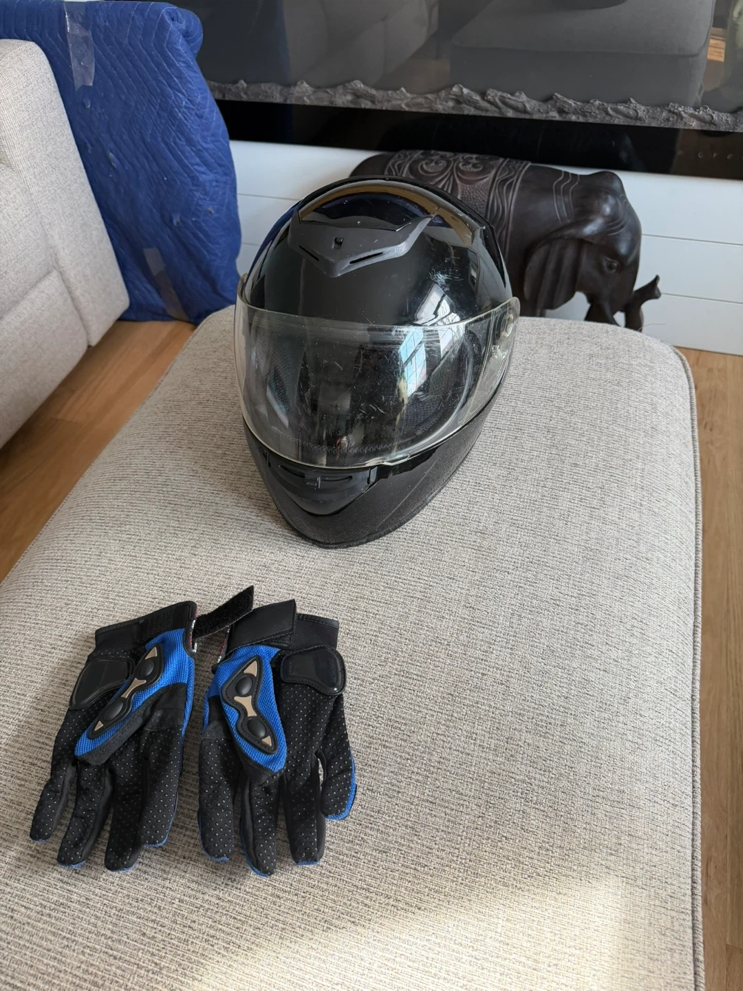 Black Motorcycle Helmet with M Gloves