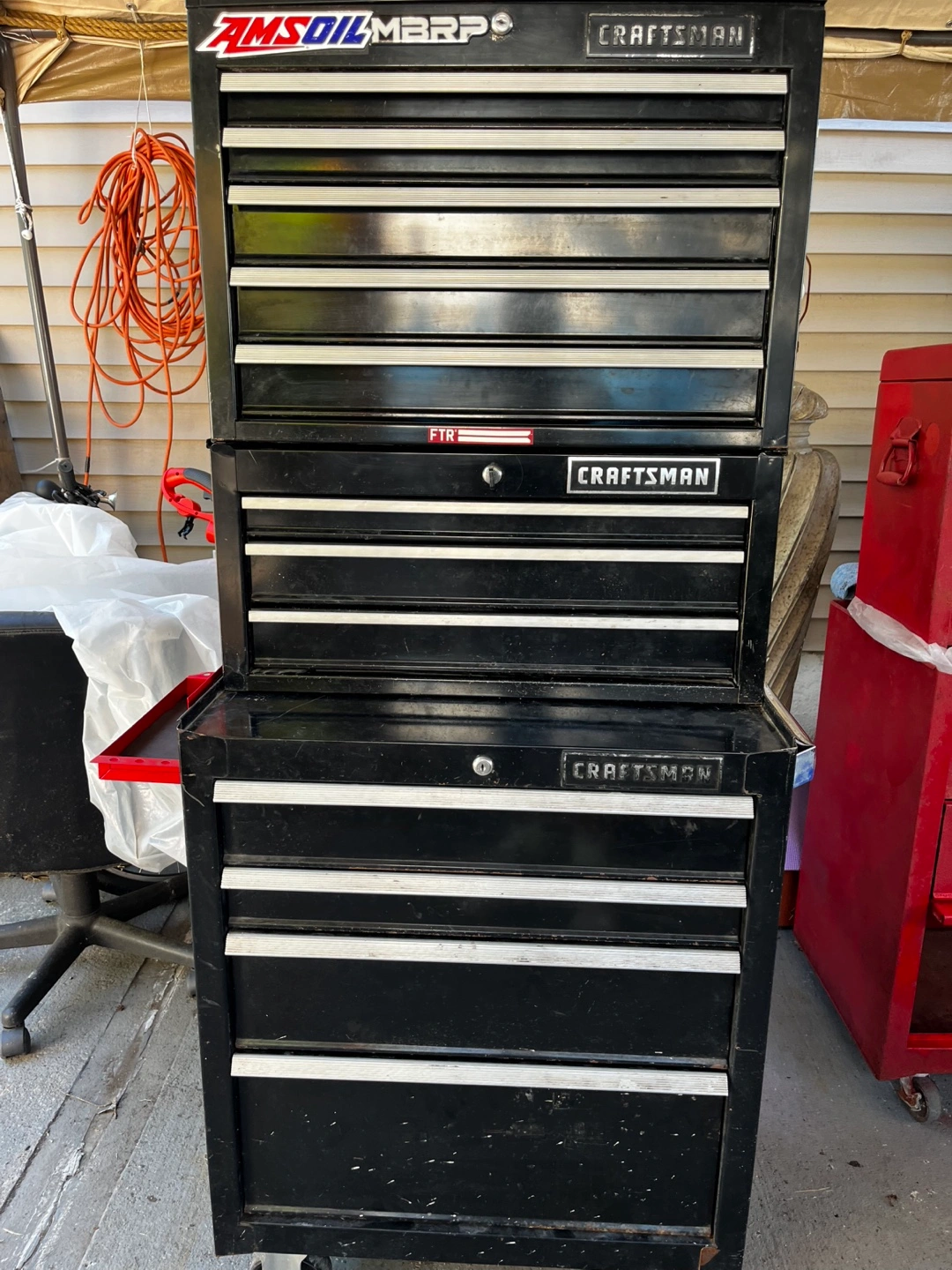 Selling a Craftsman tool chest. It has multiple drawers for organizing your tools. It is black with silver drawer trim. Perfect for any garage or workshop