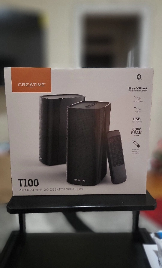 Selling a new set of Creative T100 Premium Hi-Fi 2.0 desktop speakers! They come in the original box. Enjoy enhanced workspace audio with plug-and-play setup and powerful acoustics. The speakers feature BasXPort technology and convenient controls for easy use