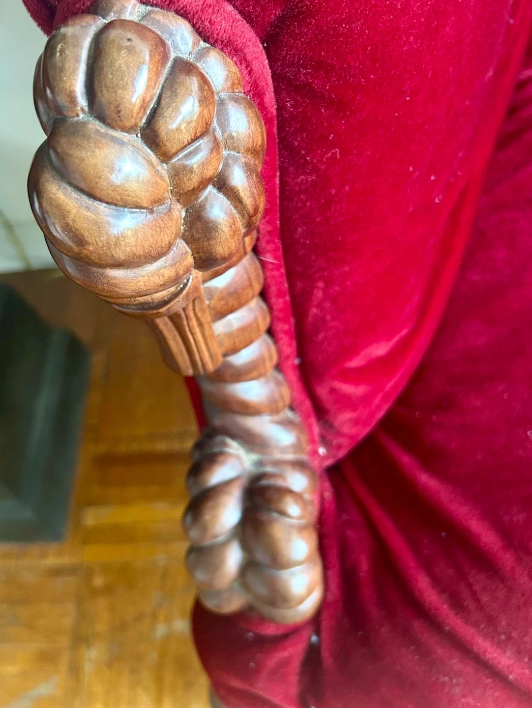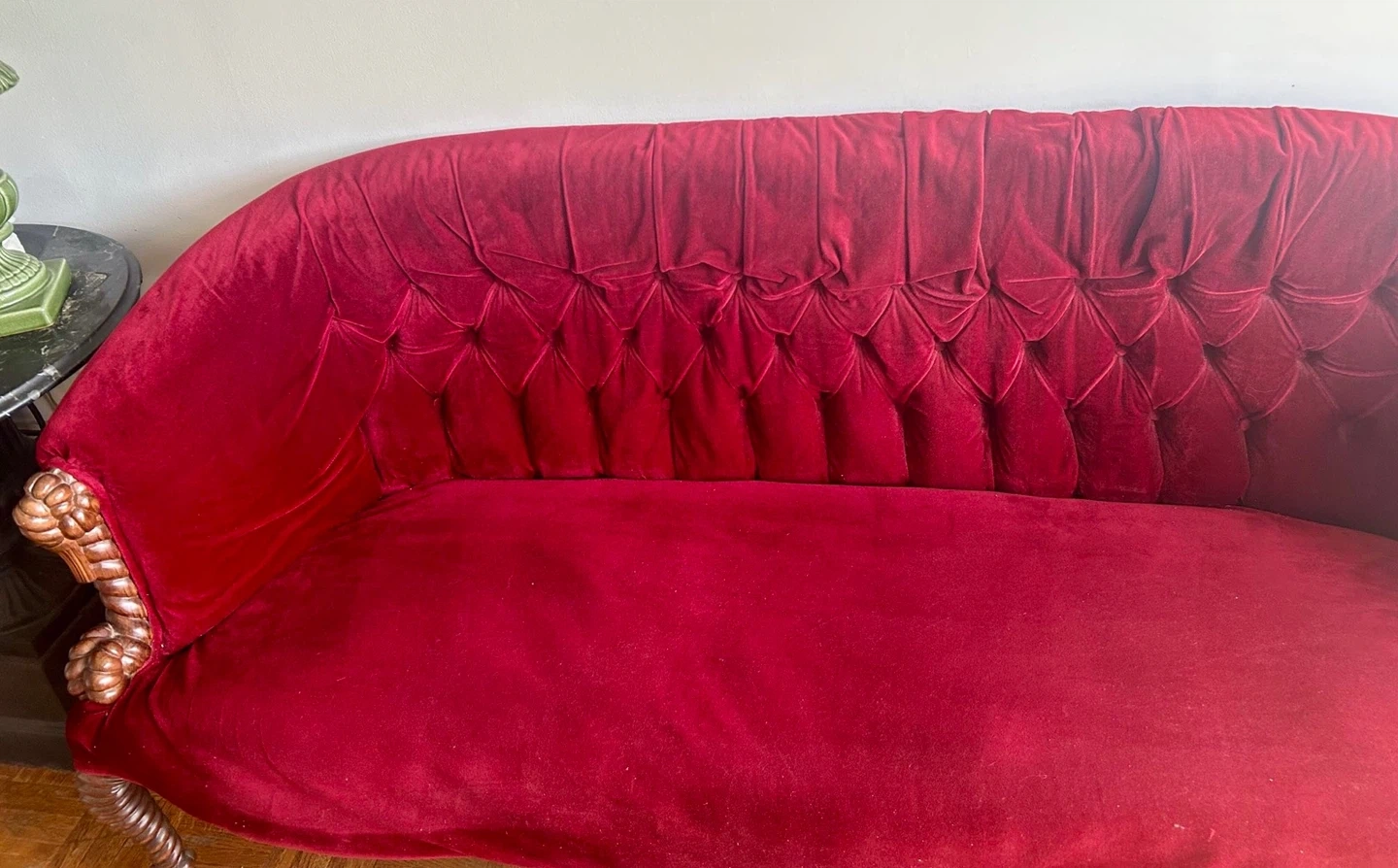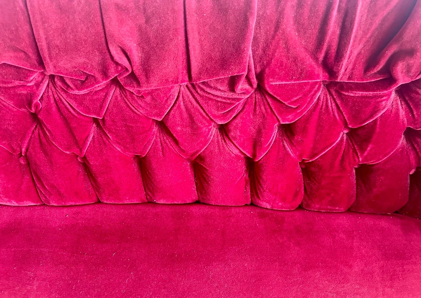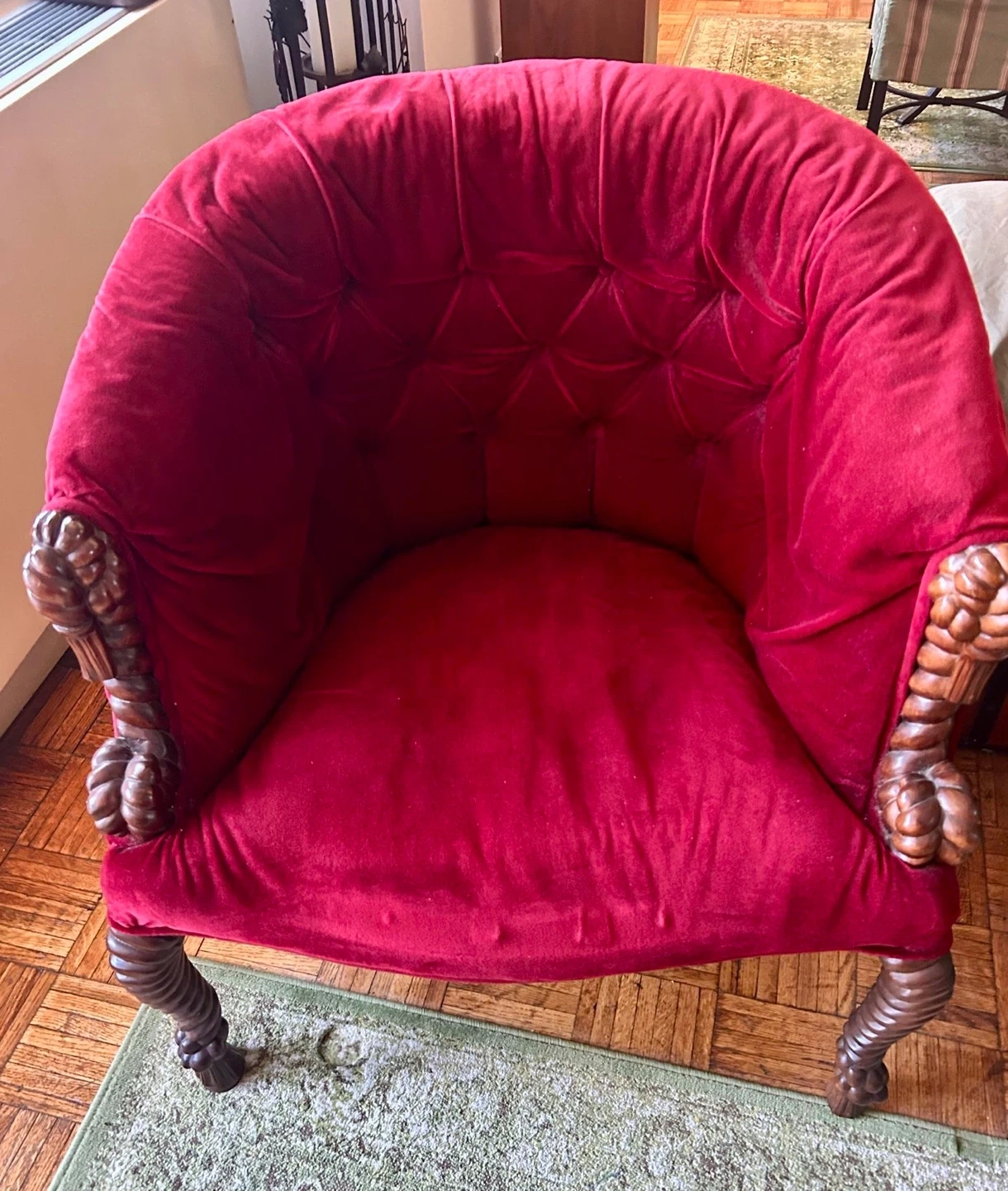 65Selling a beautiful 3- piece set of sofa and 2 matching arm chairs. Vintage set! It's a stunning combo that would add a touch of elegance to any room. The crimson chairs and sofa feature a classic design with intricate detailing on the legs. All in great condition and ready to find a new home! Sofa measures 30” H x 62 ” W x 22” D. The 2 armchairs measure 30”H x 27”W x 22”D. All pieces have well been taken care of. No smoke. No pets. Clean and intact.