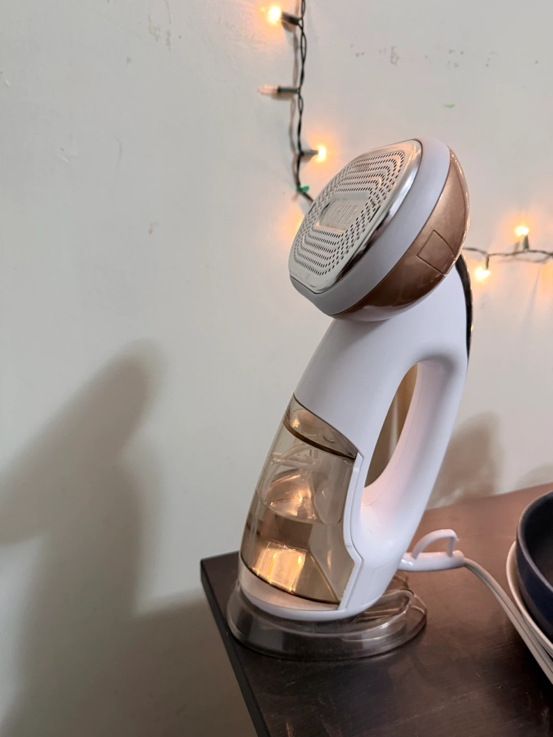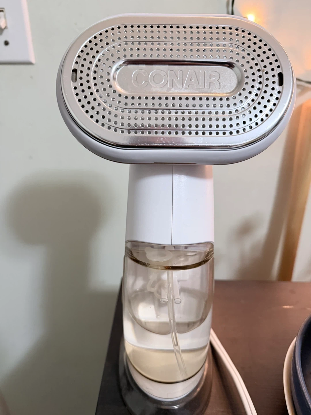 This Conair handheld garment steamer is perfect for quick touch-ups. It's lightweight and easy to use, with a detachable water tank. Great for de-wrinkling clothes on the go!