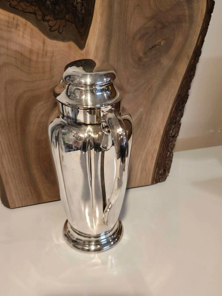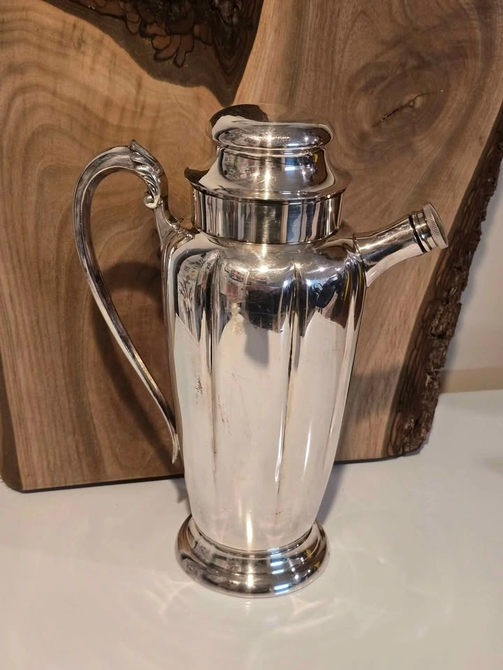 Beautiful silver plated piece, proudly Made in Canada π¨π¦. This elegant silver-plated decanter doubles perfectly as a wine server or cocktail pitcher β timeless style for your bar cart, dinner table, or vintage collection.