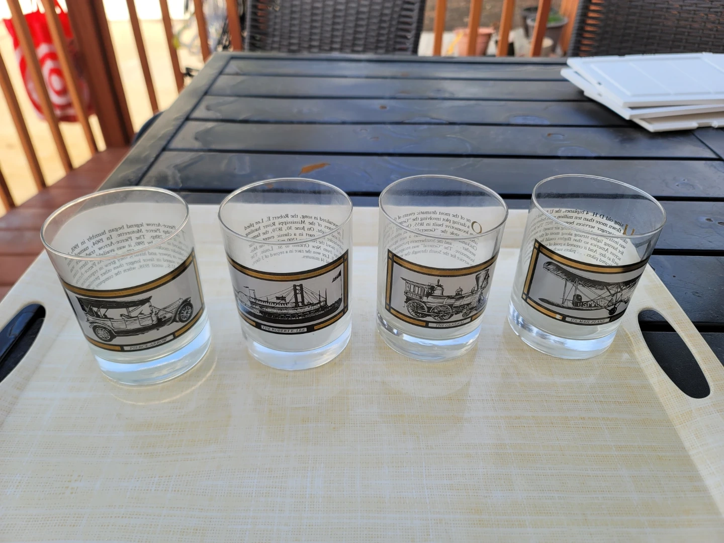 Set of 4 Vintage Collectible Glasses with Historical Vehicles