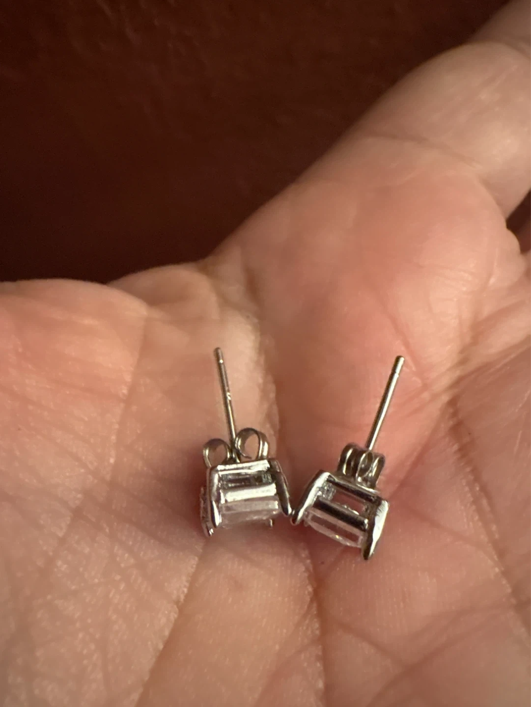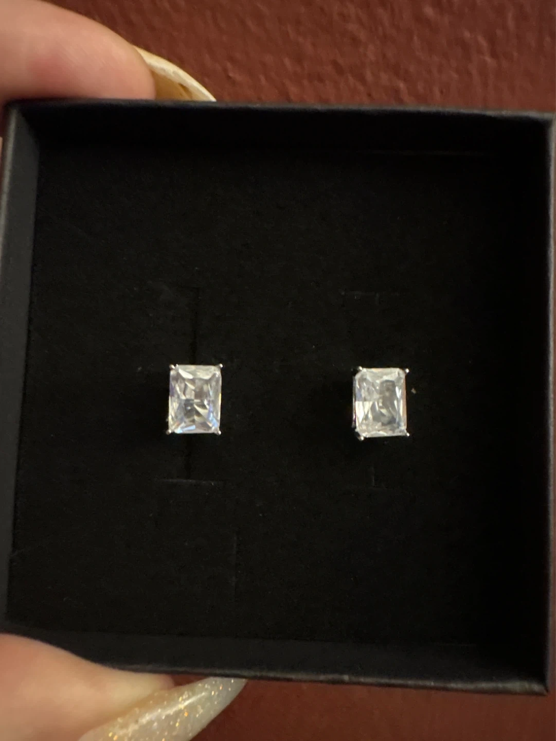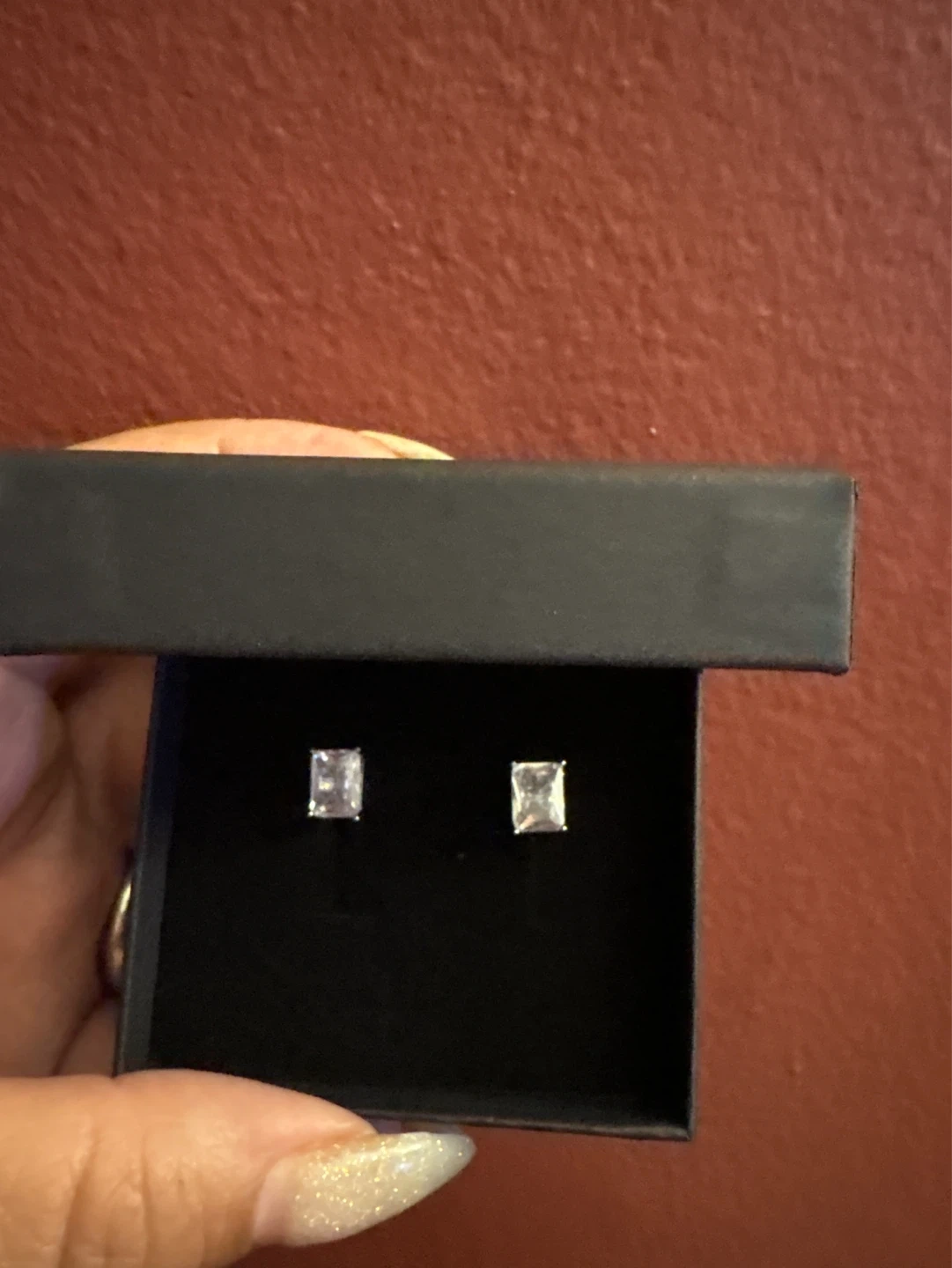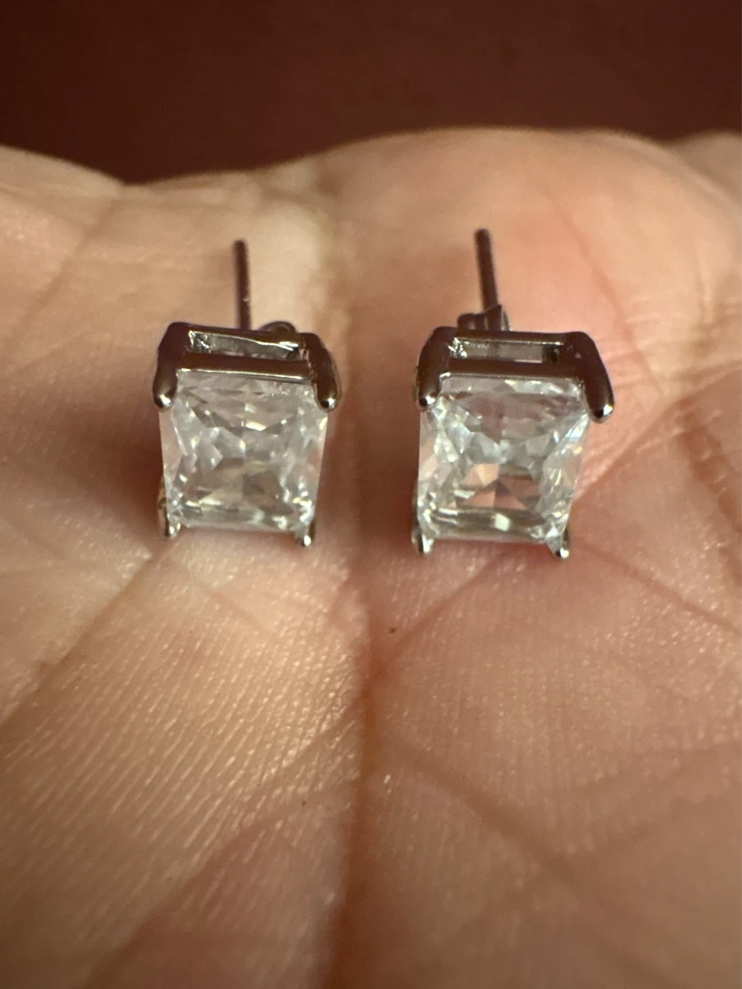 These elegant stud earrings feature sparkling cz princess-cut stones. They come with secure butterfly backings. A classic accessory for any outfit! Comes with Box New