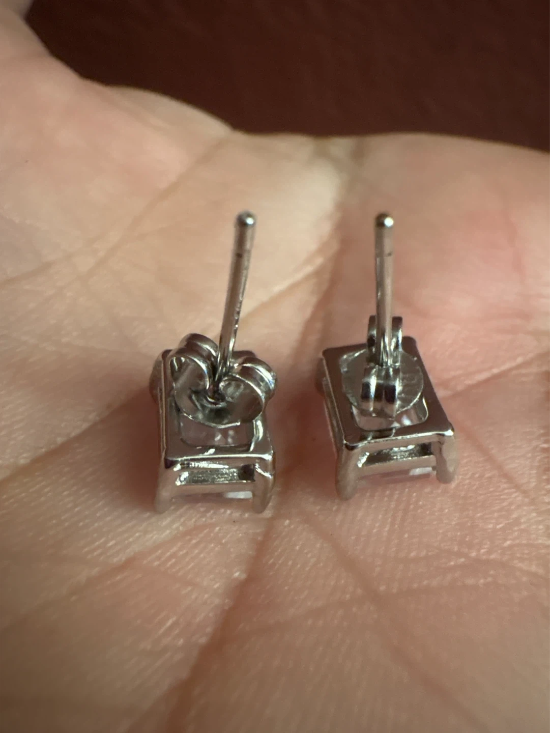 New 925 Sterling Silver Princess Cut CZ Stud Earrings