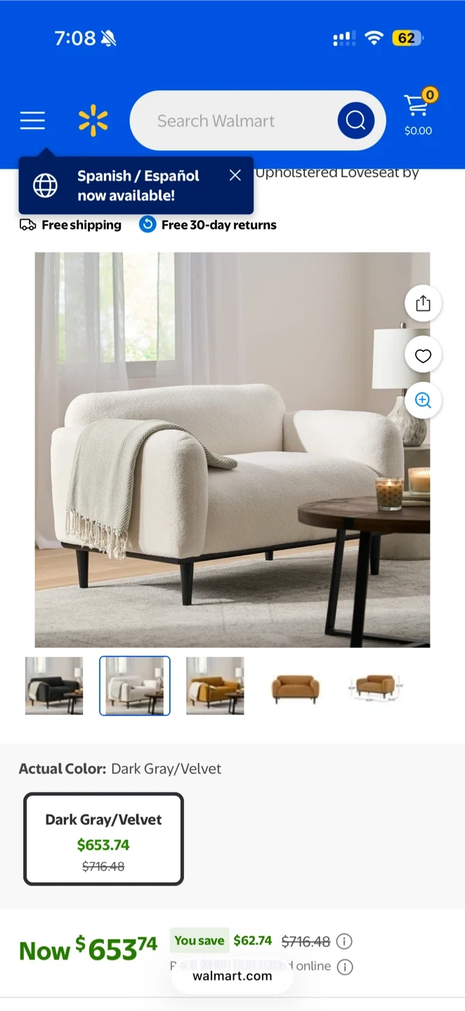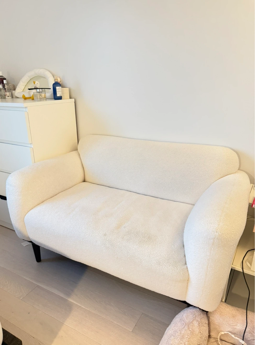 Upholstered loveseat white boucle sofa