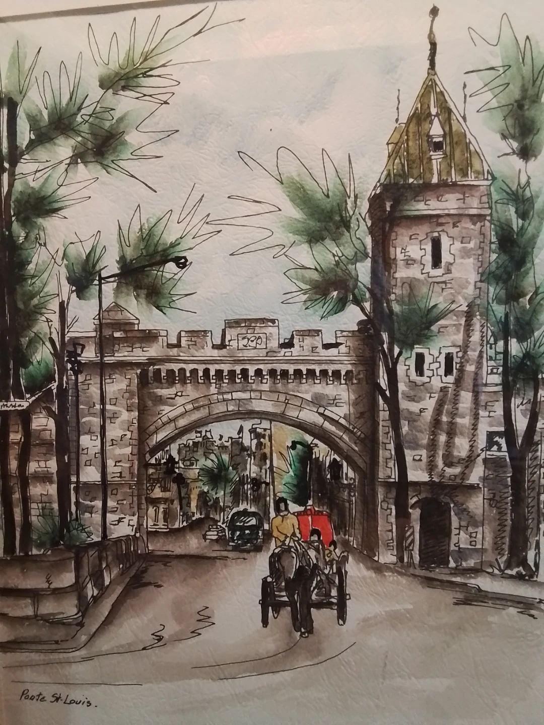 Vintage Watercolor by Helene Art - Porte St. Louis 1972 11.5x14.5"