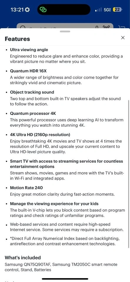 Hi there! Unfortunately, I have to sell my TV because I recently moved and it's just too big for my new space. I'm going to miss it! It's only 5 years old and has been fantastic and problem-free. It has all the smart TV functions and multiple hookups. Brackets are already installed on the back for hanging. There are no scuffs or scratches – it's in perfect condition.