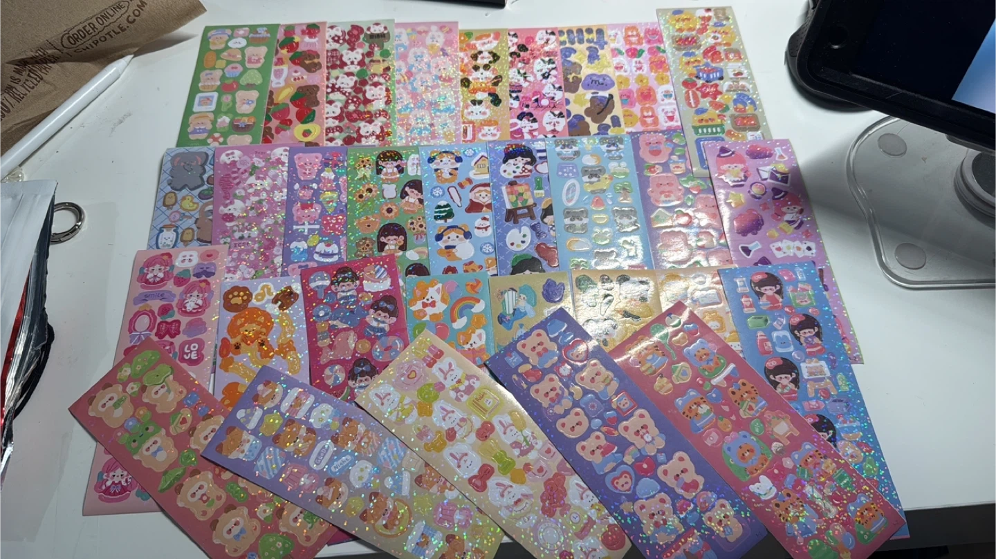10I have a bunch of cute sticker sheets for sale! They feature a variety of designs including bears, people, and food. Perfect for decorating journals, cards, or anything else you can think of Each is 1 dollar buy 10 get one free