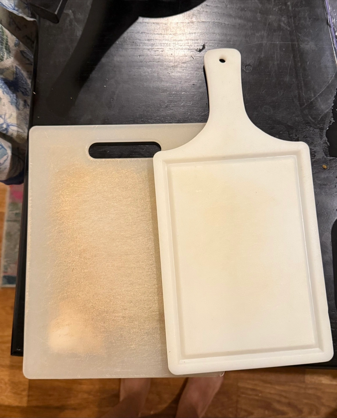 138**move out sale, can come discounted if bundled with other listings!** Selling a set of two cutting boards. One is a classic rectangular shape with a handle cutout, and the other has a unique paddle shape with a handle. No cash. Pick up on 92nd and 2nd Ave. Must go by the 29th!!