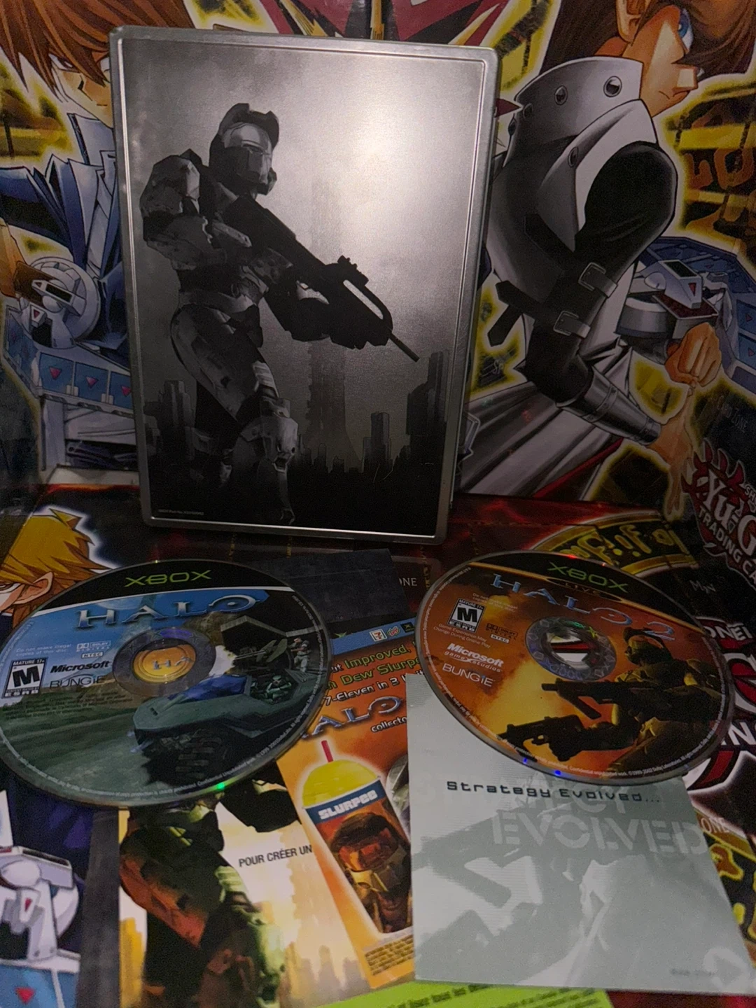 This is the Halo 2 Limited Collector's Edition for Xbox. It includes two discs and the special edition steel case. It's a classic first-person shooter experience!