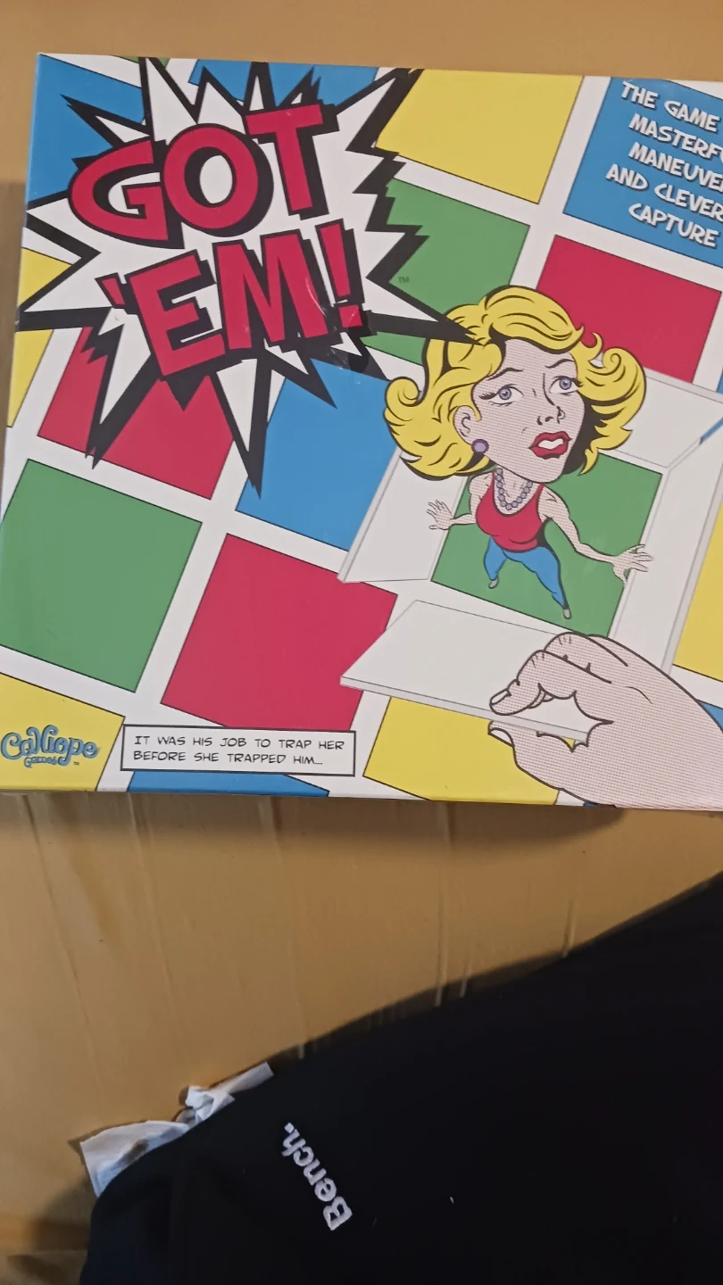 This is the Got 'Em! board game for ages 8 and up. It includes one double-sided game board, one deck of Bright Got 'Em! and Brainy Got 'Em! cards, 55 game cards, 4 pawns, and complete game rules. Fun for strategy enthusiasts! Still sealed!