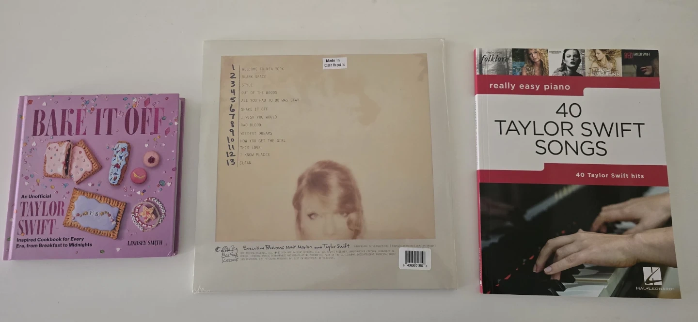 Taylor Swift's 1989 vinyl record. Includes all 13 tracks from the album. Made in Czech Republic. Taylor's cookbook And 40 Taylor Swift songs plus pretty makeup all set . I sell the whole new set .