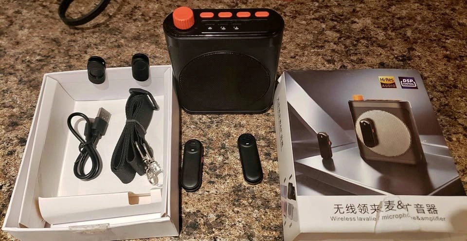 Voice Amplifier for Teachers, presenters, coaches, etc. Wireless Magnetic Lavalier Microphone, Bluetooth Portable Rechargeable Speaker. Great for Classroom, Meetings, Speeches, Outdoor use. 1 for $40, 2 for $70.