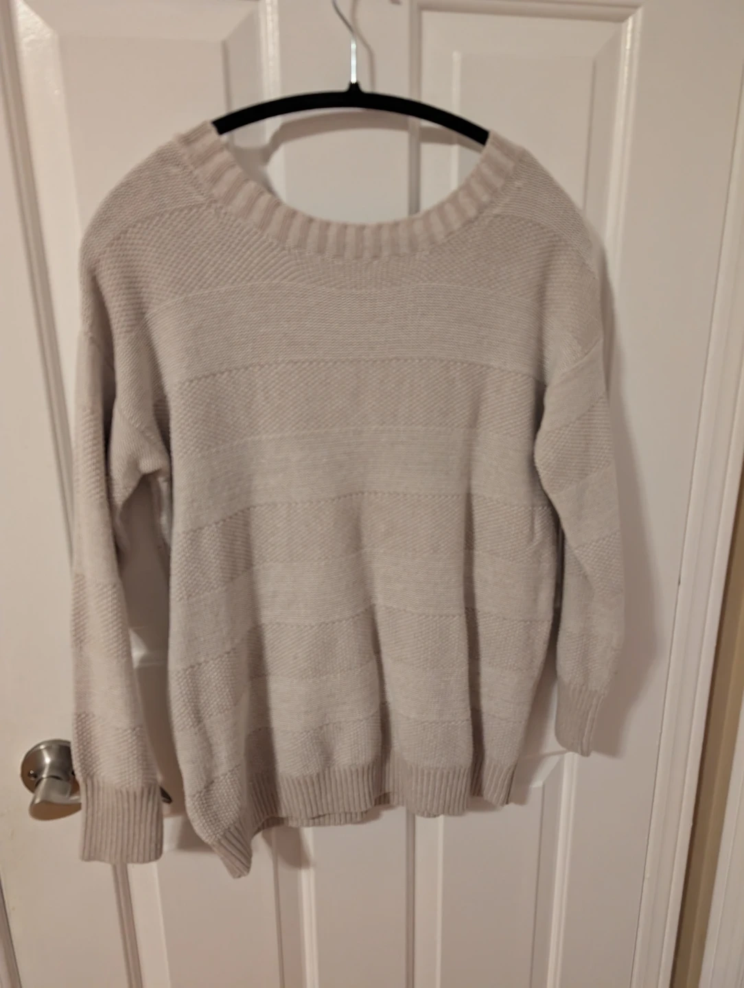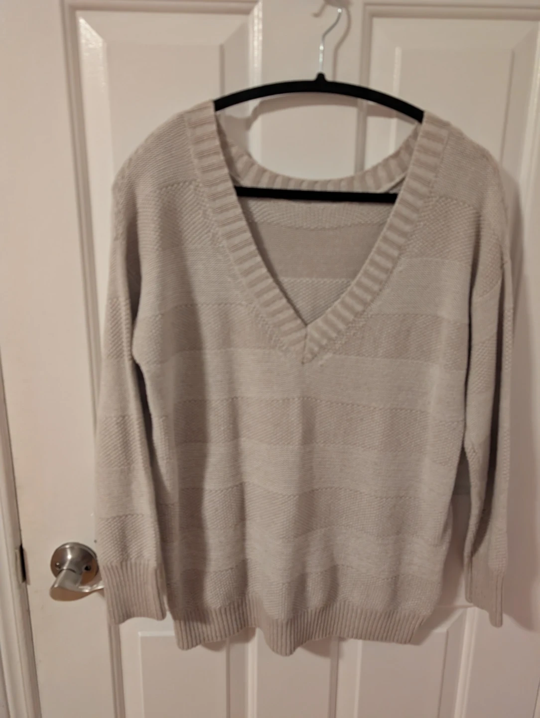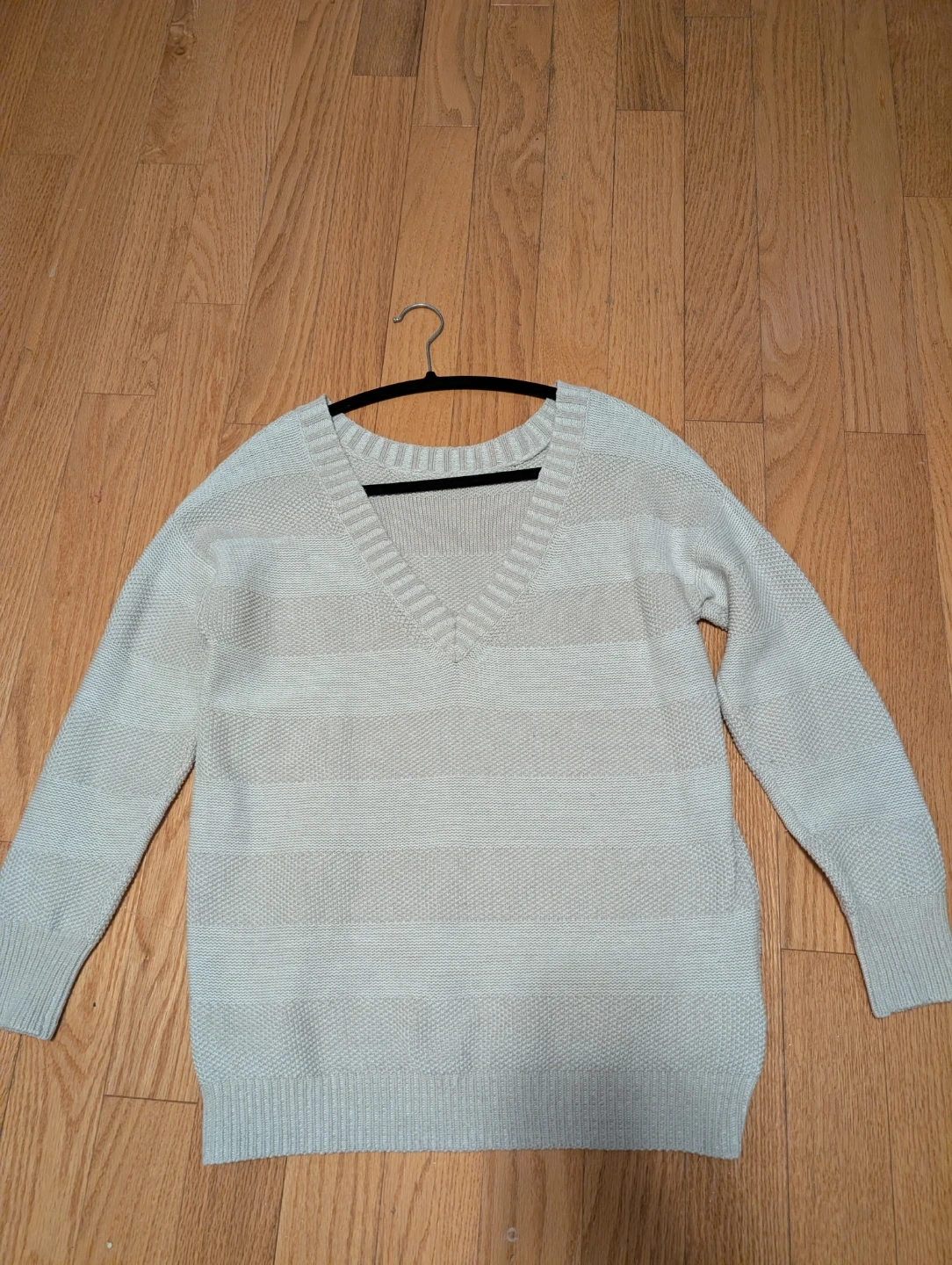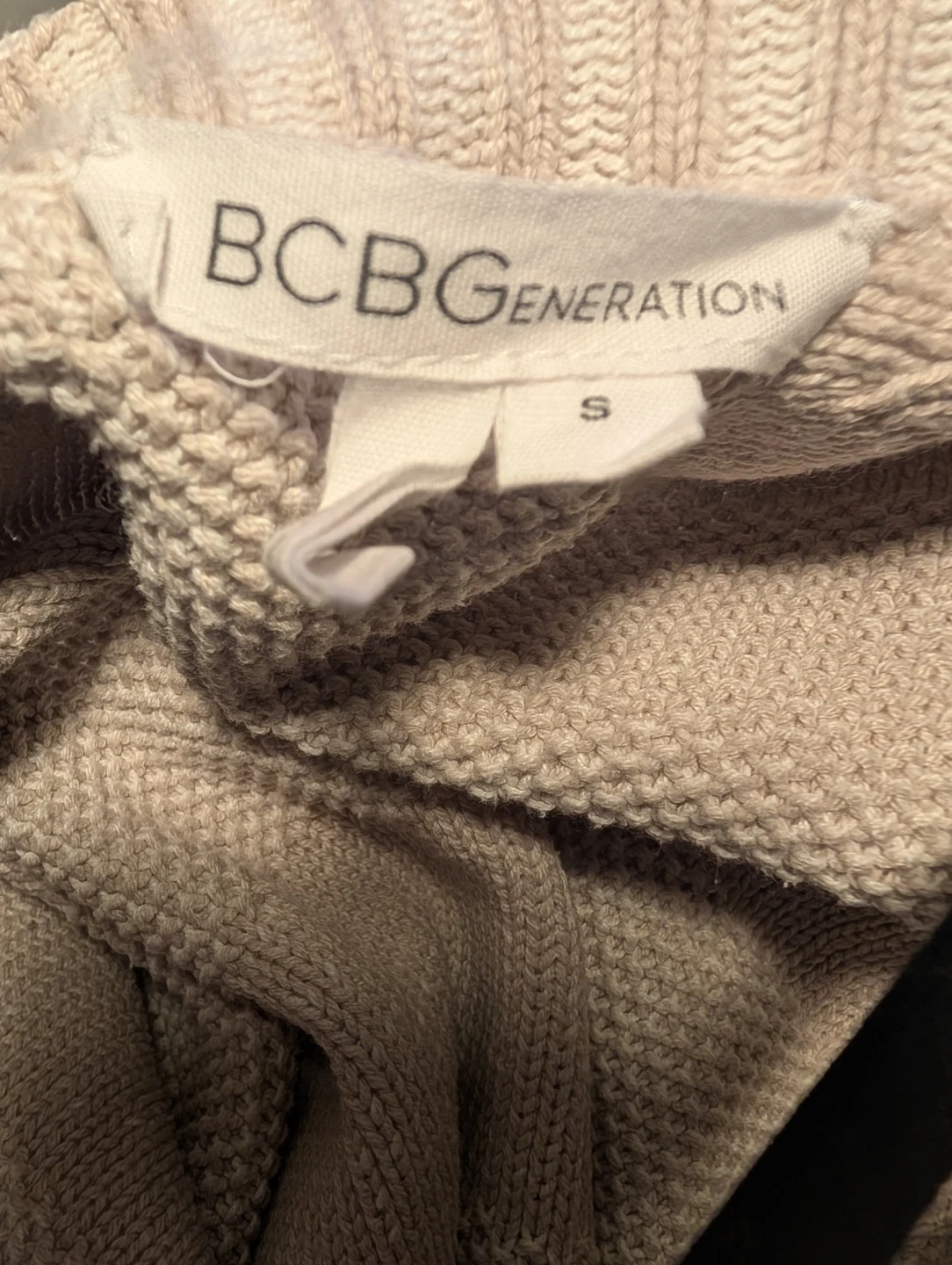 This is a BCBGGeneration women's sweater. It's a size small with a V-neck and a striped pattern. The knit material is comfortable for everyday wear.