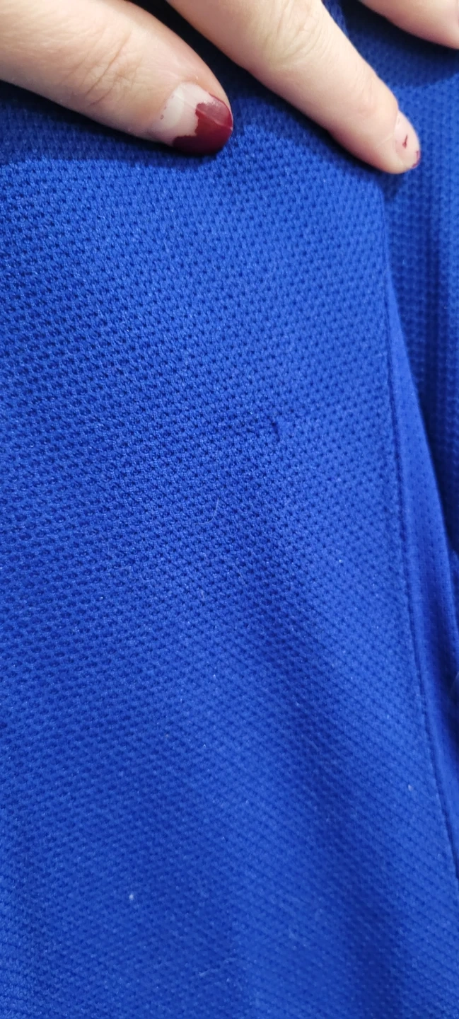 2 pulls, one to the lower left of the logo and one on the left sleeve.