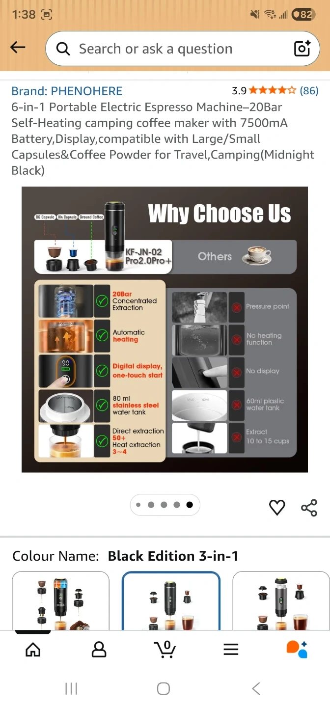 Phenohere 3-in-1 Portable Electric Espresso Machine