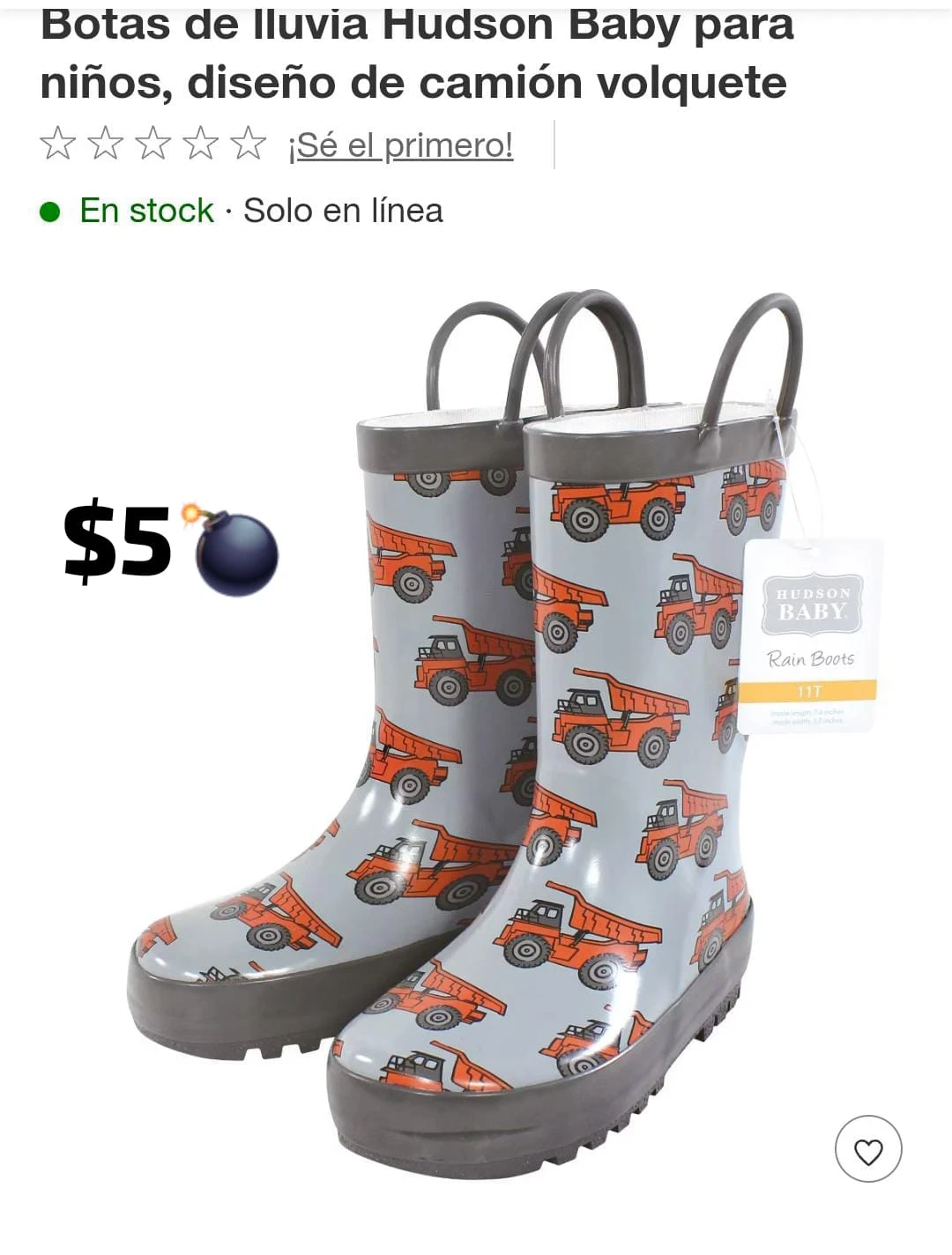 These Hudson Baby rain boots are perfect for your little one! They feature a fun dump truck design in gray and orange. Size 11T