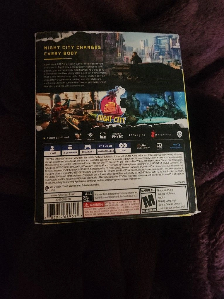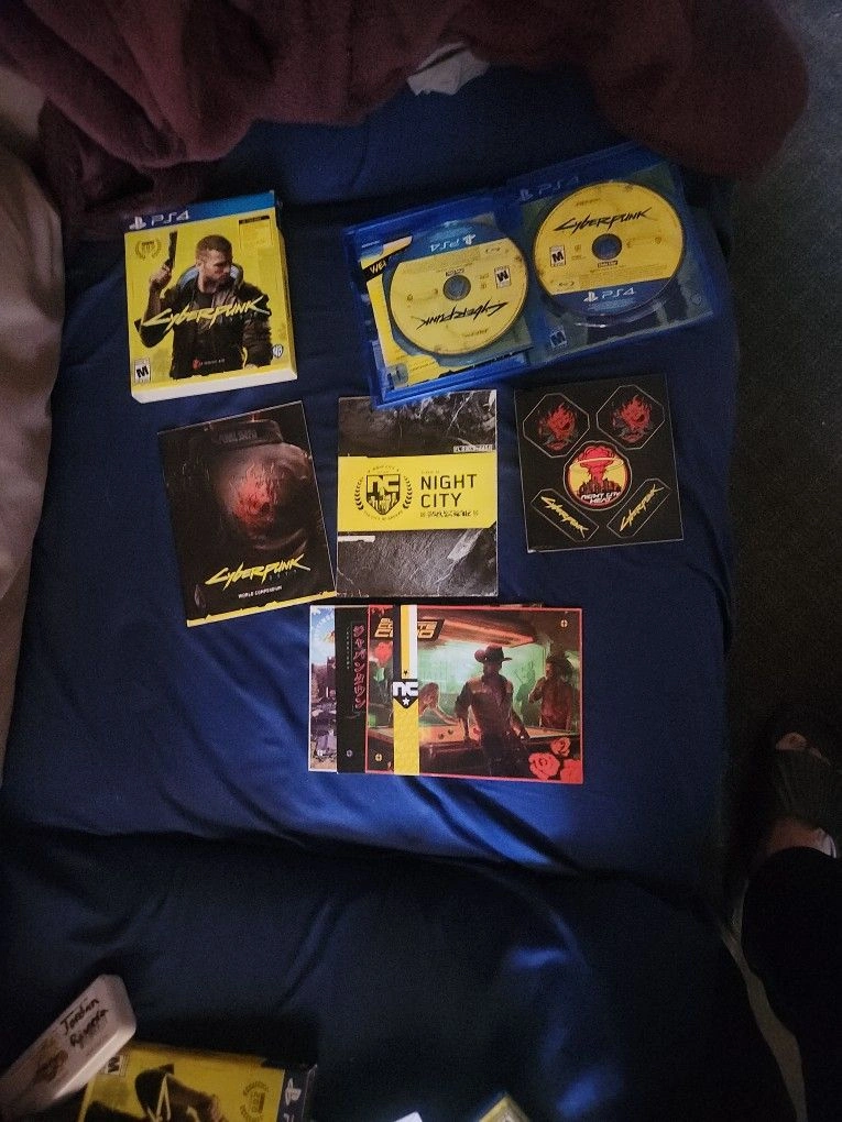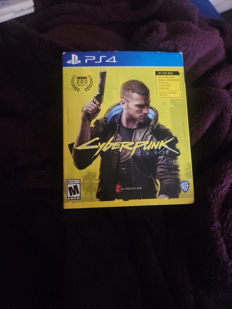 Cyber Punk 2077 for Ps4, with stickers, map, postcards, and world companion. Asking 40 Open, never used. Also have other games, check other listings