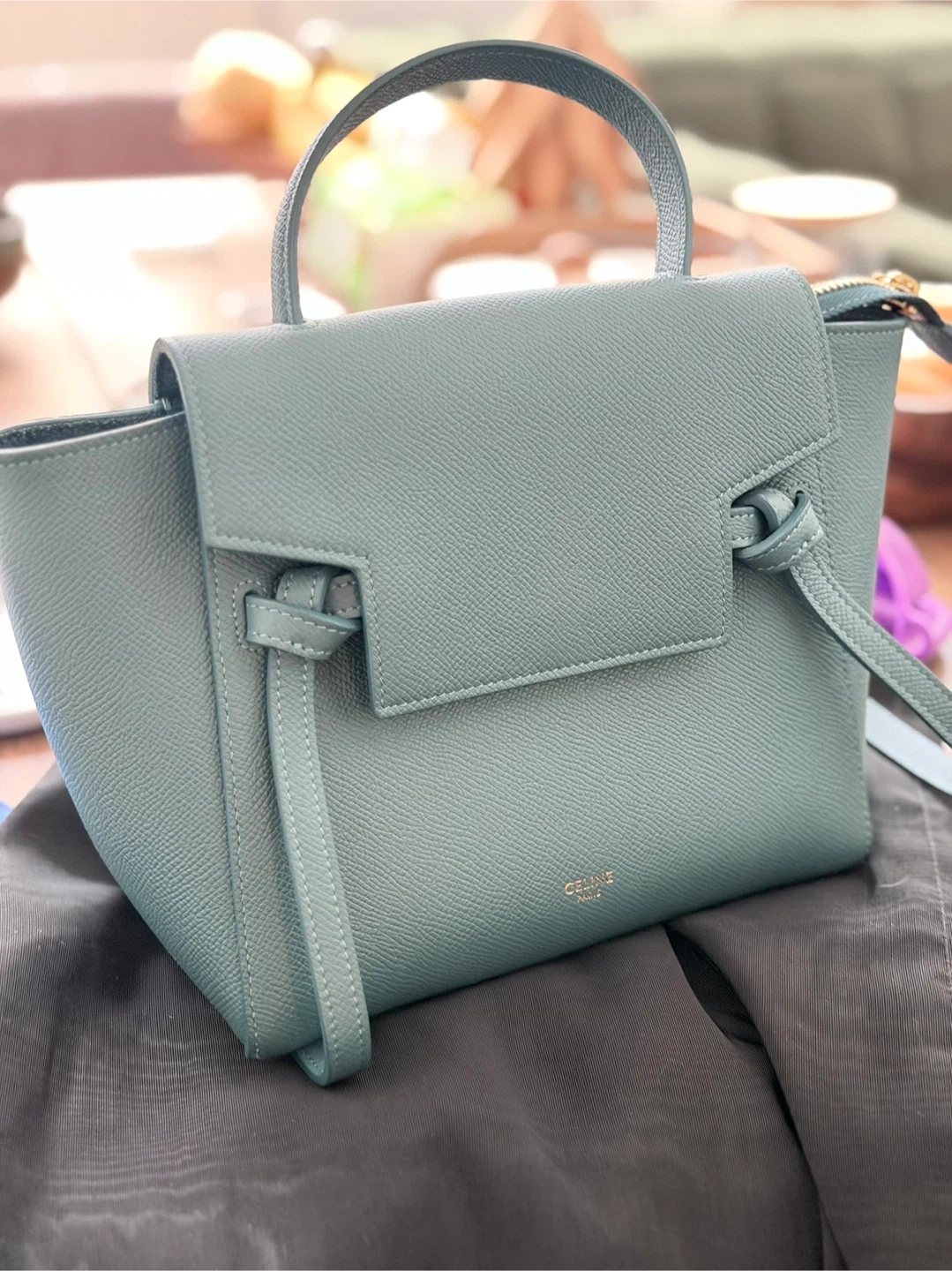 Selling a Celine Paris medium belt bag in a beautiful green color. It's in great condition and features a unique design with the signature knotted belt detail. Pickup by court square area