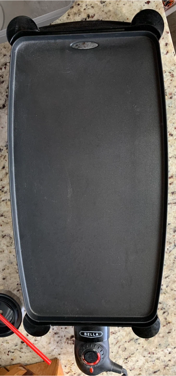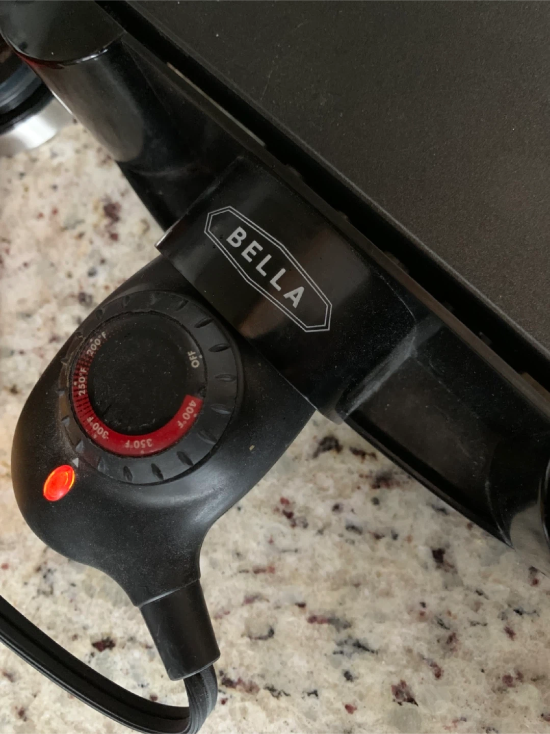 Non-stick surface for easy cleanup. Adjustable temperature control. The griddle heats up quickly (tested before posting). Includes grease collector tray.