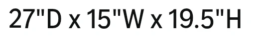 . Measures 27"D x 15"W x 19.5"H. Features a soft, carpeted surface.
