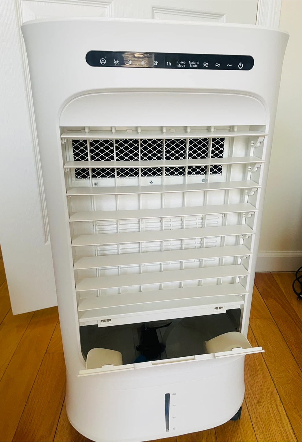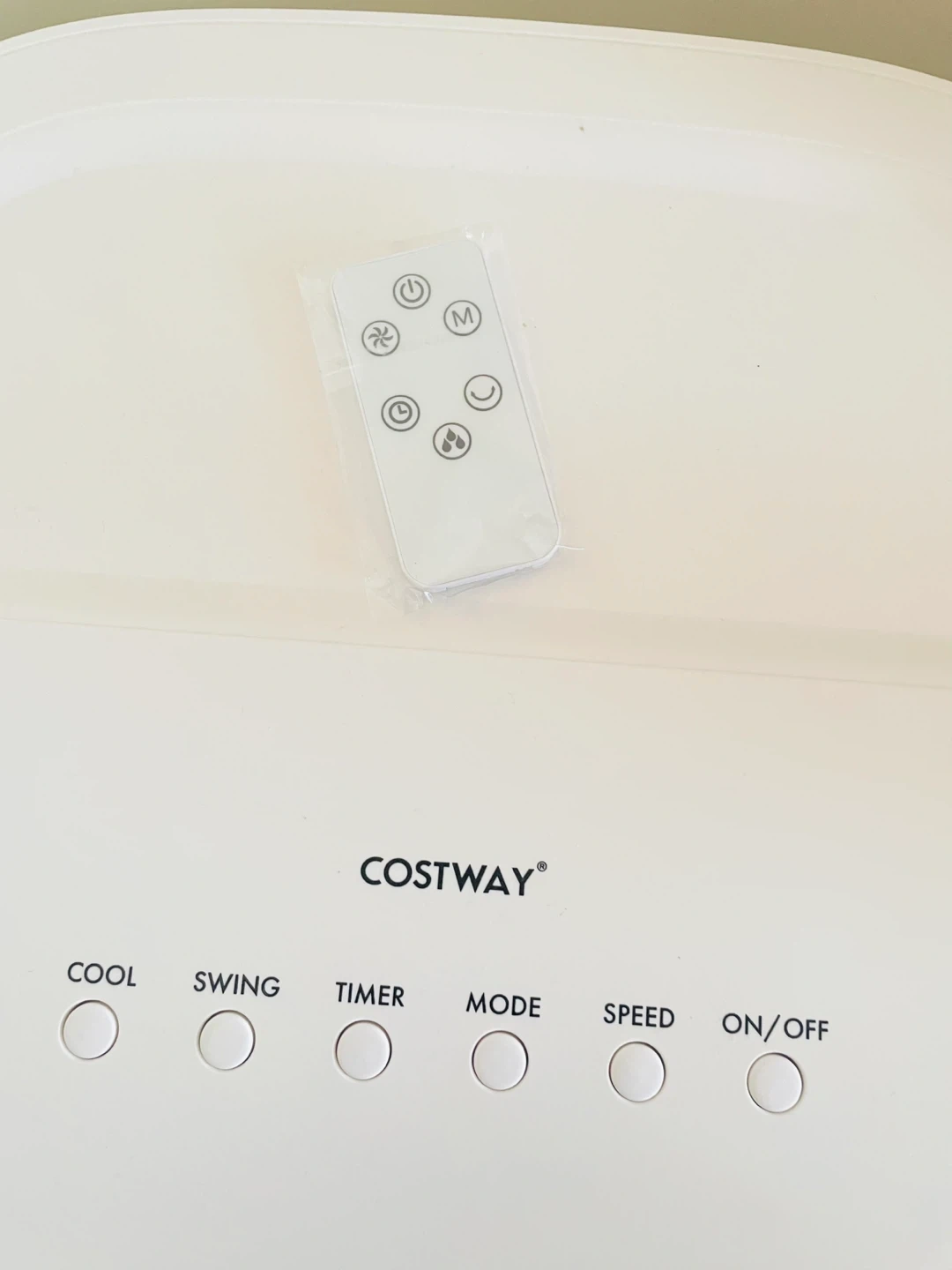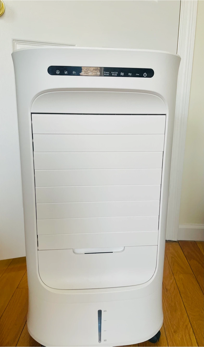 This is a Costway portable evaporative cooler fan. It features cool, swing, timer, mode, and speed settings. Includes a remote control. It's great for keeping spaces comfortable! Astoria pick up