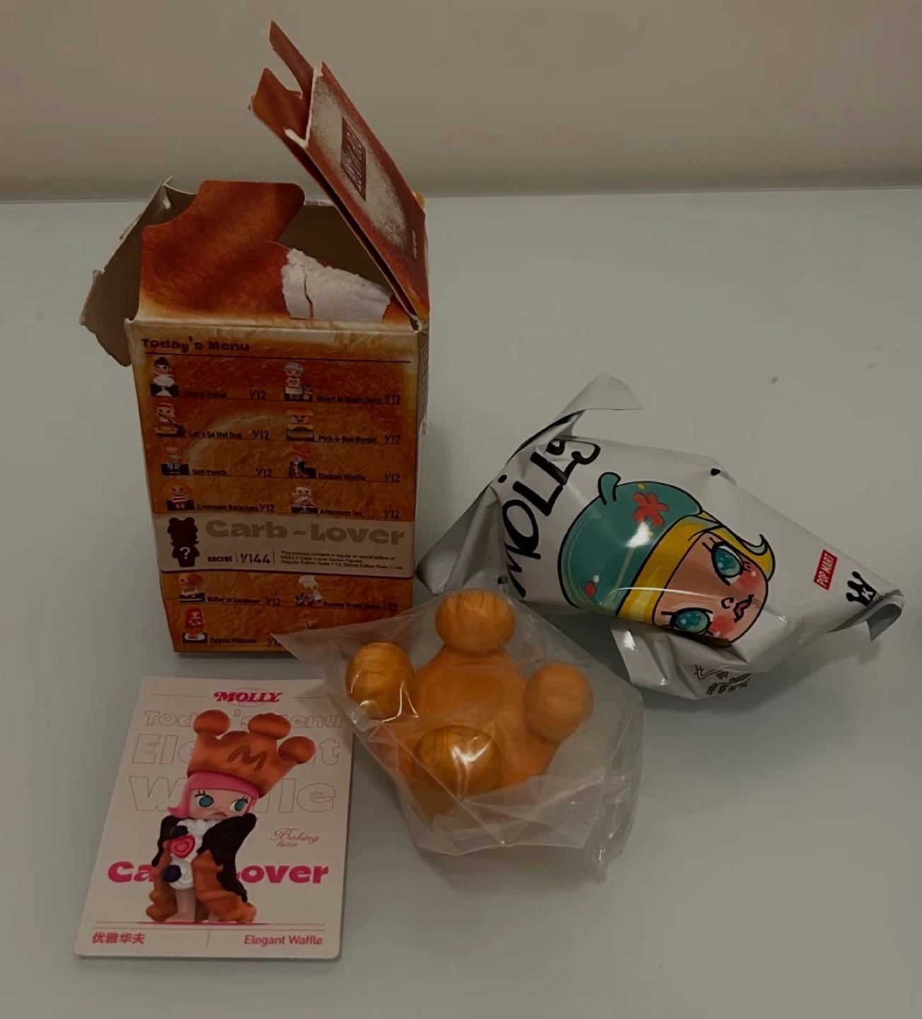 This is a POPMART Molly Carbluver figure. It features the Elegant Waffle design. Comes with original packaging and accessories.