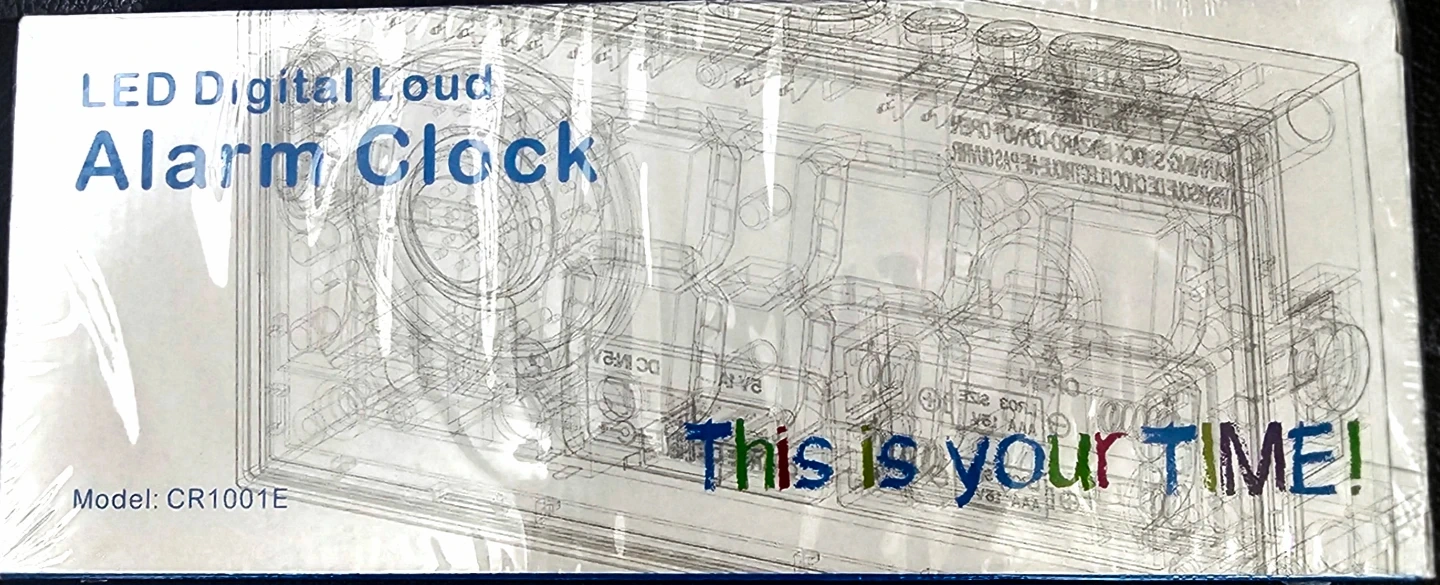 I'm selling a brand new LED Digital Loud Alarm Clock, model CR1001E! It's still in its original packaging, never been opened. This clock is designed to be loud, so you'll never oversleep again! It has a digital display and is easy to use. Perfect for heavy sleepers or anyone who needs a reliable alarm.