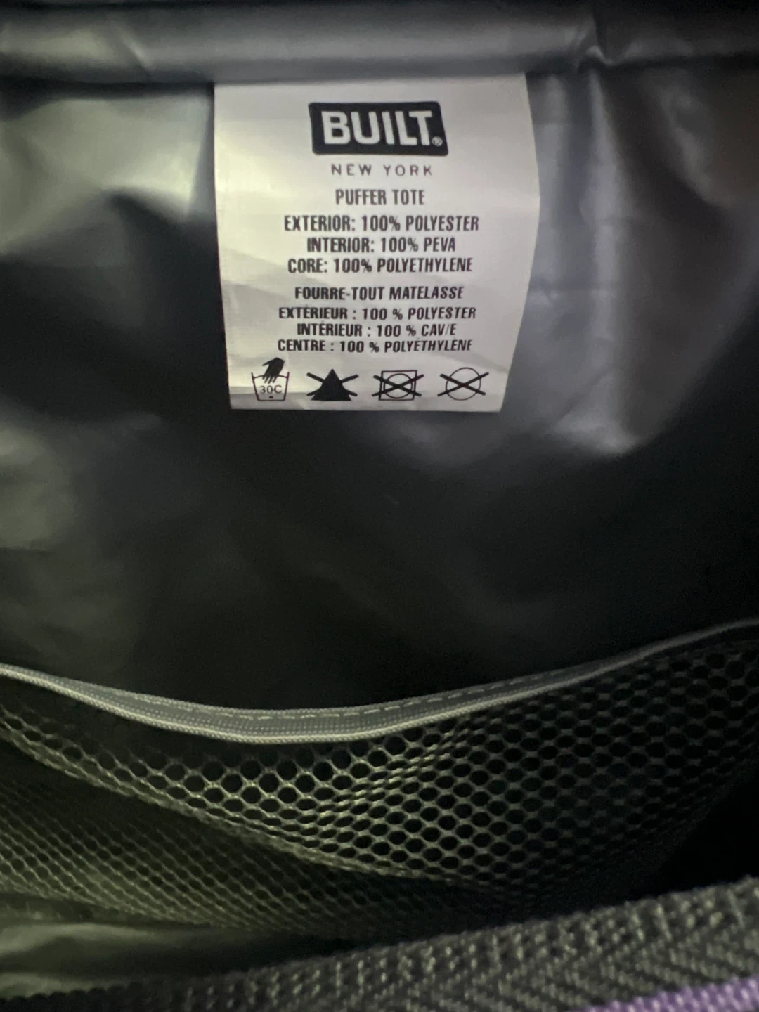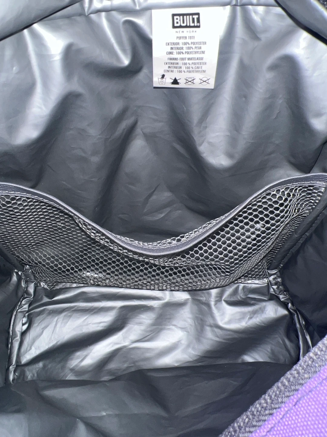 Selling a cute purple quilted tote bag from BUILT NY! It's in great shape and perfect for carrying your essentials. The bag features black straps and a zippered closure. It also has convenient side pockets for water bottles or other items you need to grab quickly