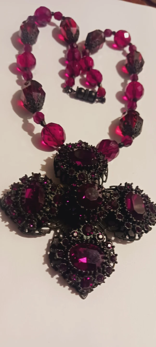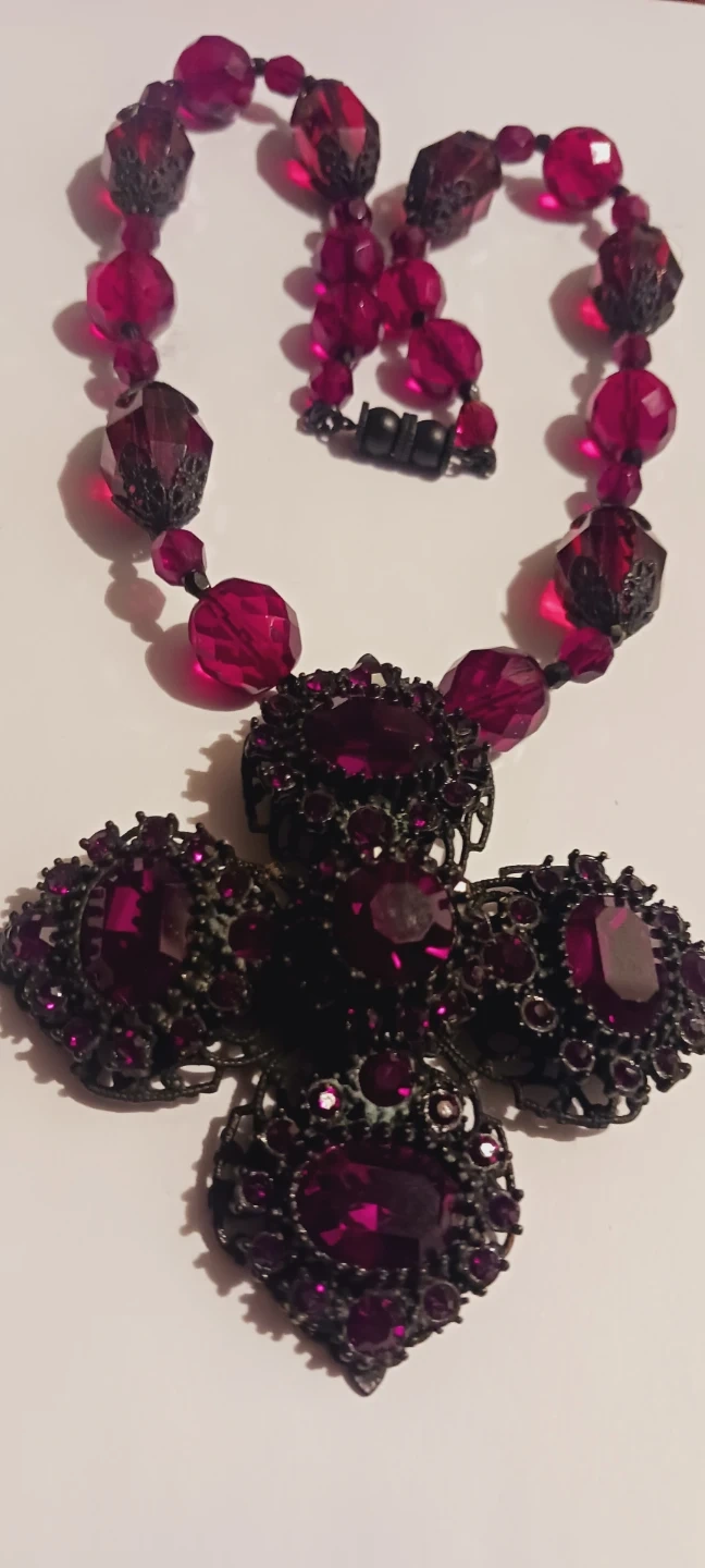 Gorgeous Vintage Bohemian Garnet Maltese Cross Pendant Beaded Necklace. 16" long. 3"×3" the size of the pendant . Excellent condition. ALL MY PRICES ARE NEGOTIABLE !!