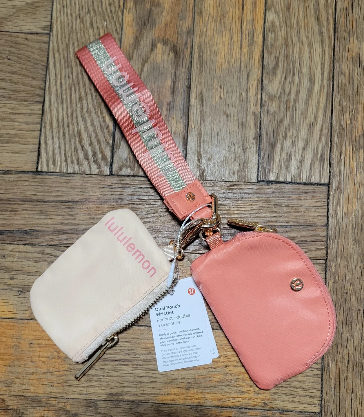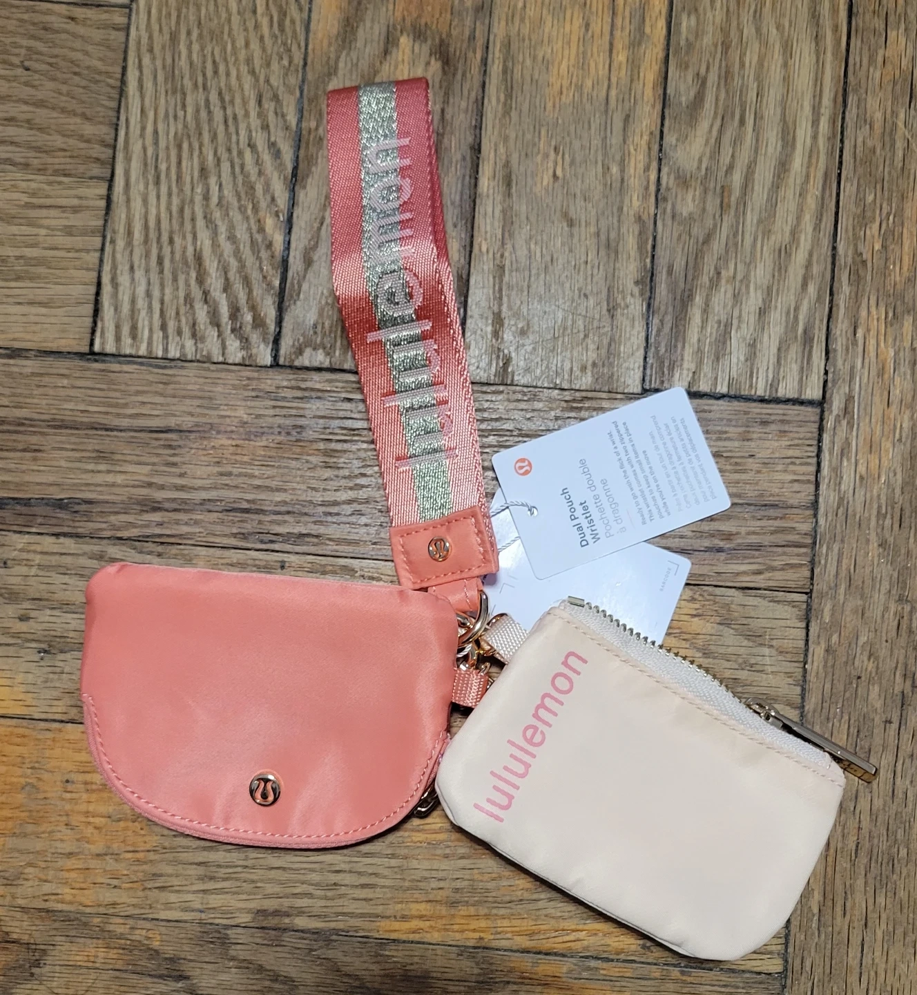 Lululemon Dual Pouch Wristlet Peach and Cream