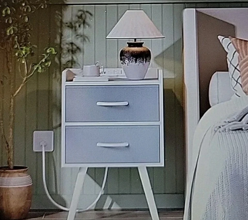 Selling a Pair of Huuger nightstands. Features one drawer and an open shelf for storage. Has charging station on top. The design includes sleek legs and a clean, modern look. Perfect for adding a touch of style to your bedroom! Open box, brand new. Cash only pickup in Queens NY