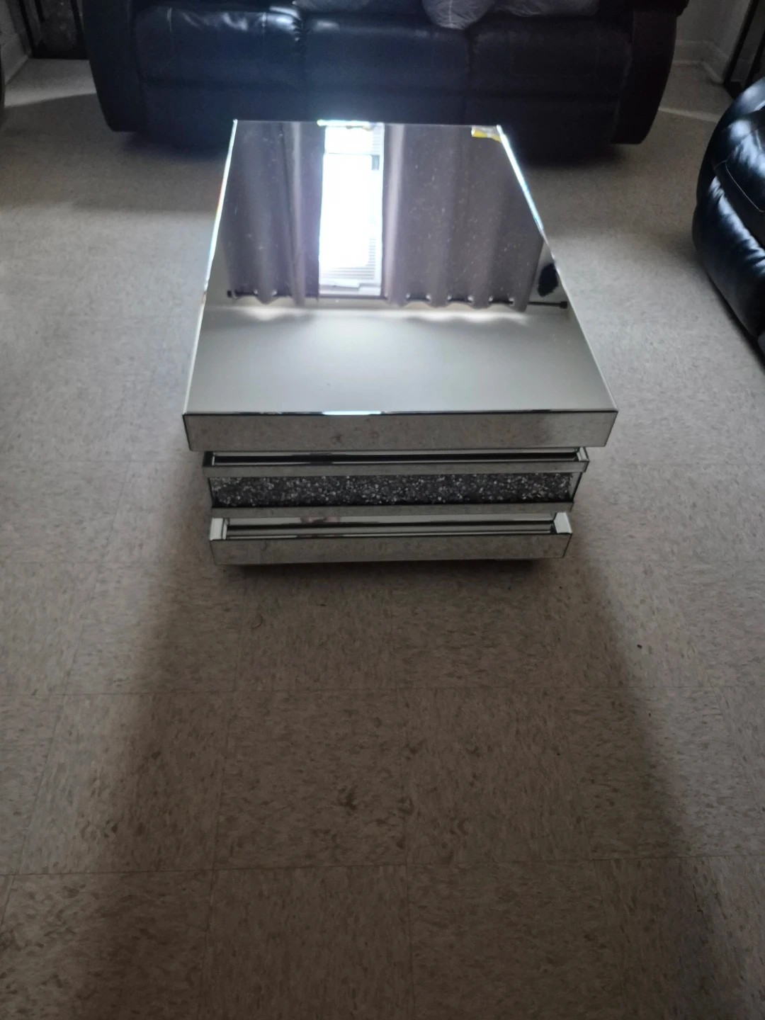 Mirrored Coffee Table with Crushed Diamond Inlay