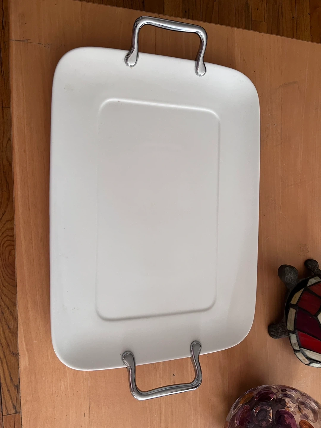 White Serving Platter with Chrome Handles