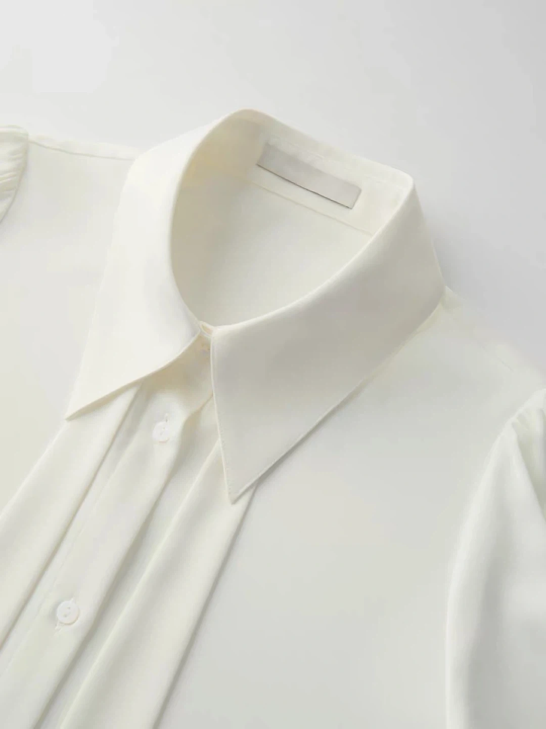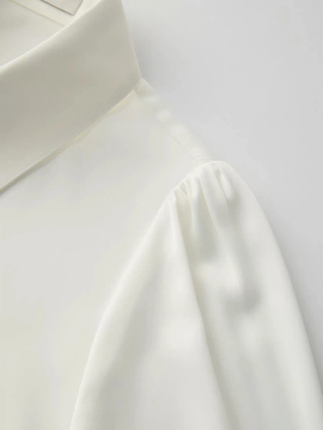 Here's a lovely white blouse! It looks to be in great condition and features a stylish design. Perfect for adding a touch of elegance to your wardrobe