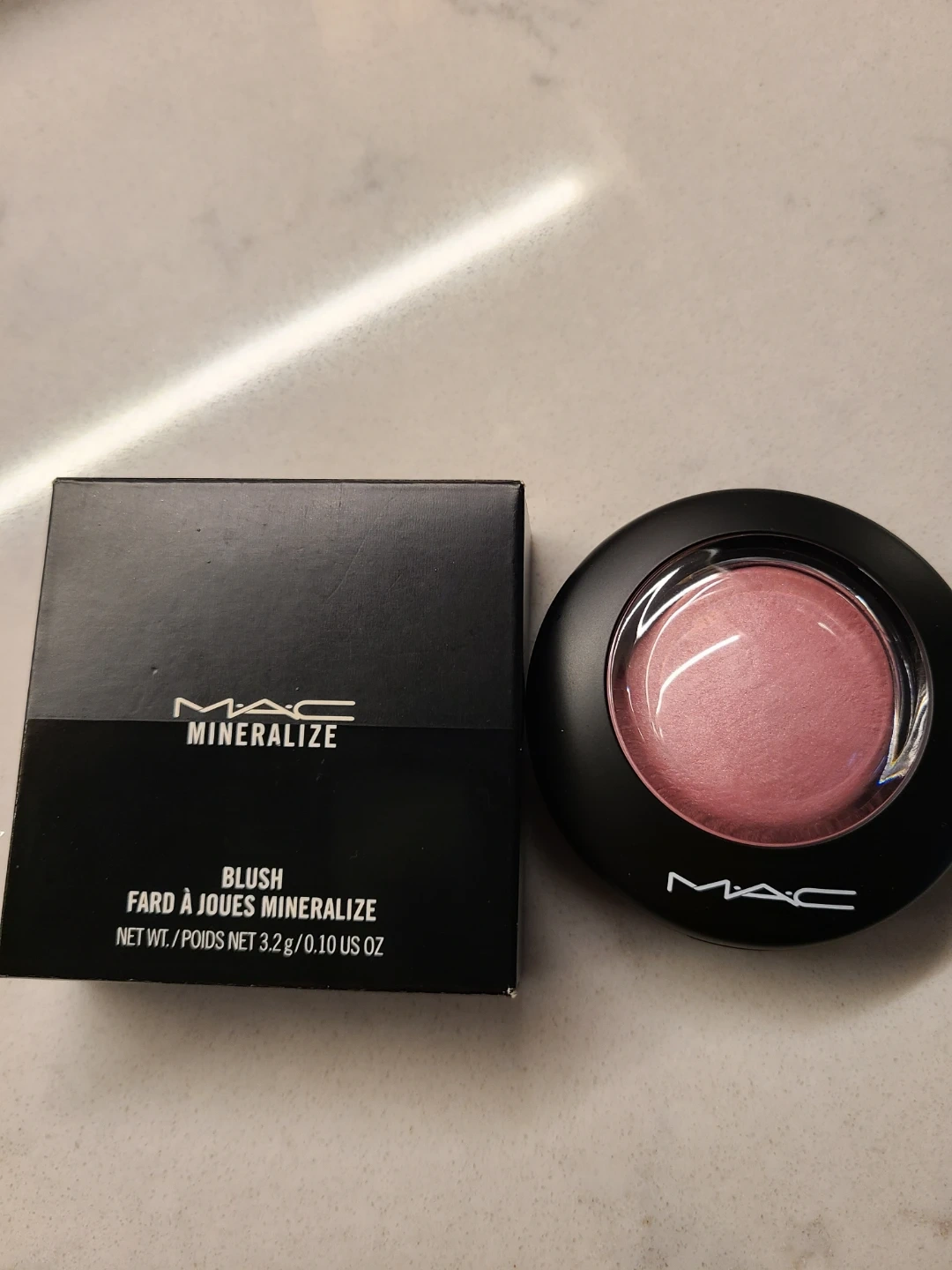MAC Mineralize Blush in the shade "Just a Wisp". It's a lovely pink shade. Net weight is 3.2g / 0.10 US oz.